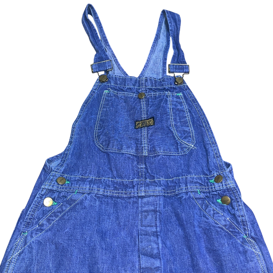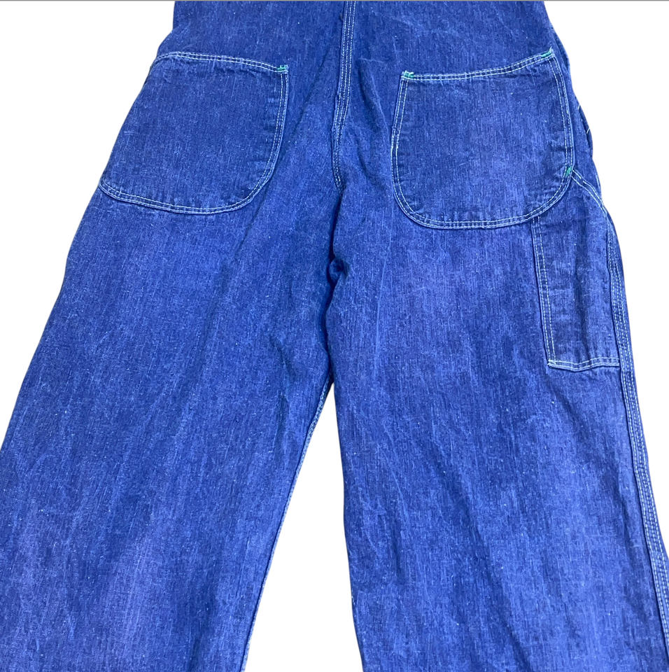 Vintage Sanforized Made In USA Denim Overalls 29 x 28 1970's Blue Jean Button Fly