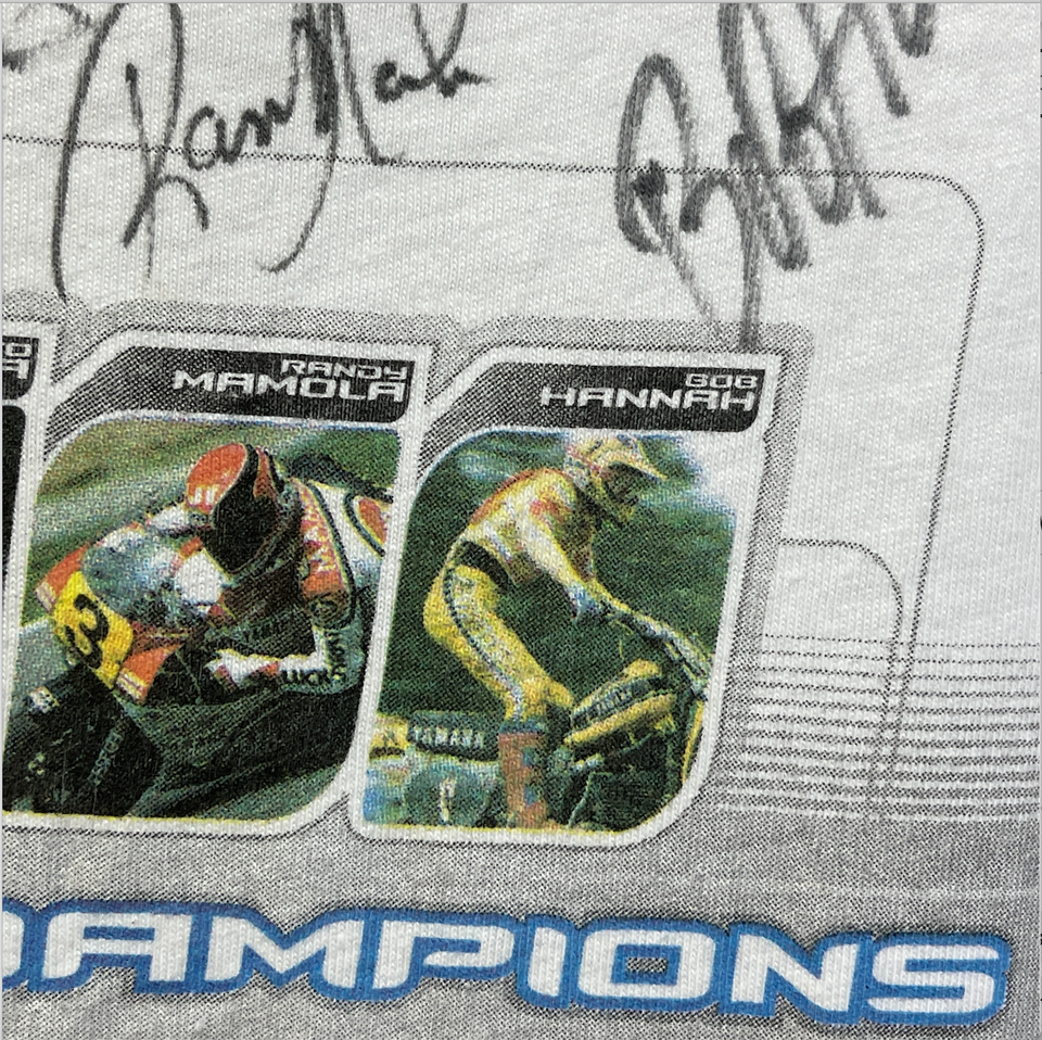 Excellent condition. Vintage 2000. Washed, never worn. Size tag XL extra large. Measures 24 inches across the chest and 32 inches overall length. Daytona Weekend of Champions March 10 - 12 2000. Yamaha. Motocross signatures on the back of shirt next to graphics. Include: Jeremy McGrath, Jamie James, Gary Jones, Rich Oliver, Ernesto Fonseca, Randy Mamola, Bob Hannah, Eddie Lawson, Doug Henry, Don Emde, Broc Glover, Thomas Stevens, Mike Bell, Wayne Rainey. Please see all photos. We are a smoke free, pet friendly home. Have a great safe day!