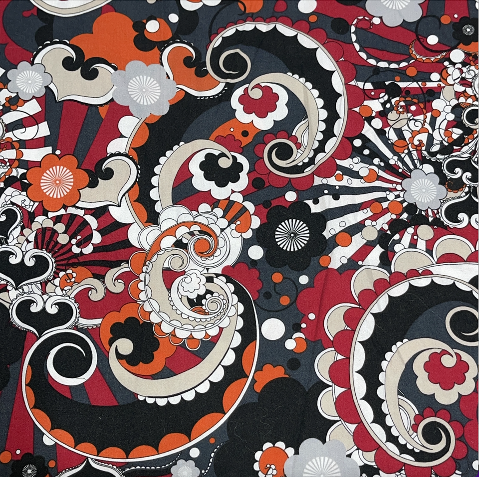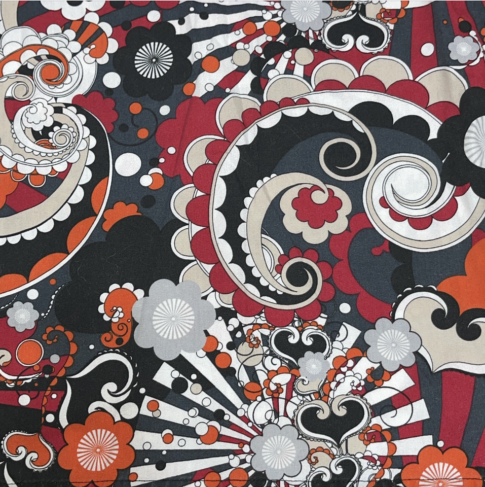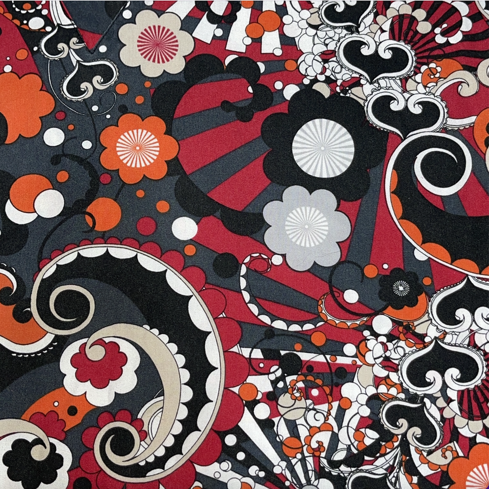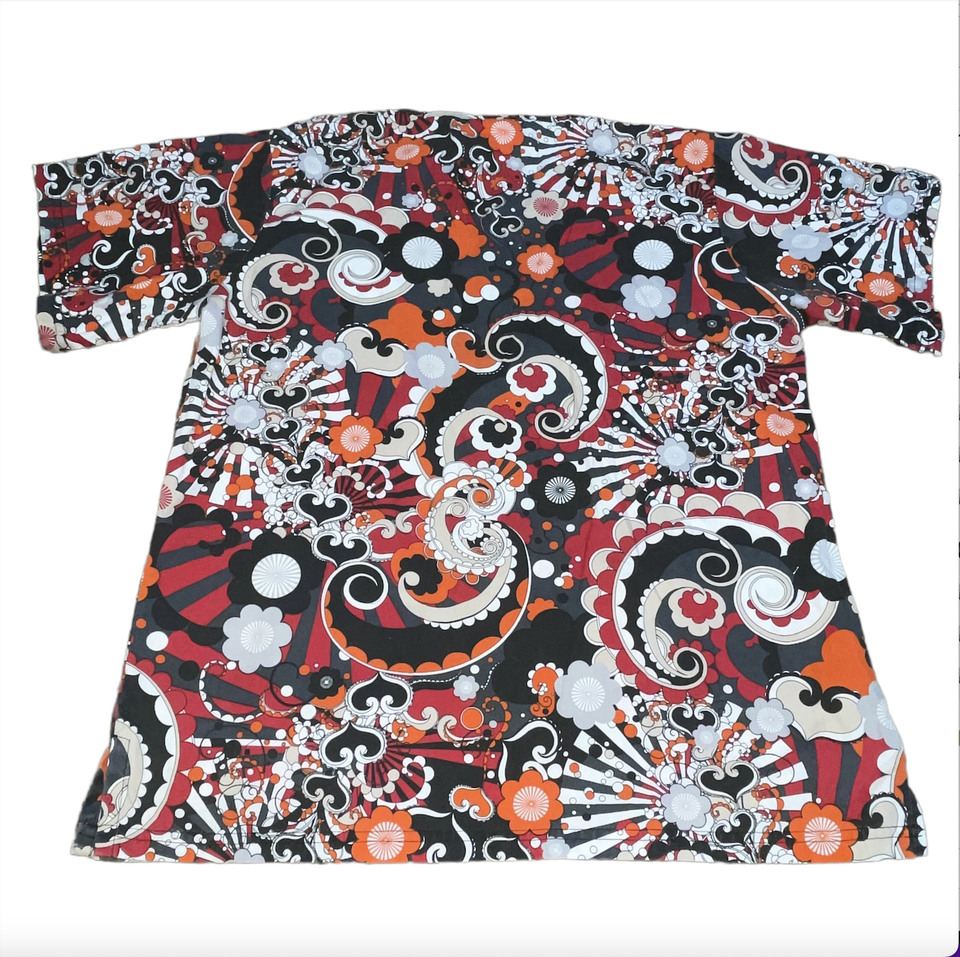 UA Size S Small Black Gray Red Orange Paisley Floral Vibrant Scrub Shirt Nurse