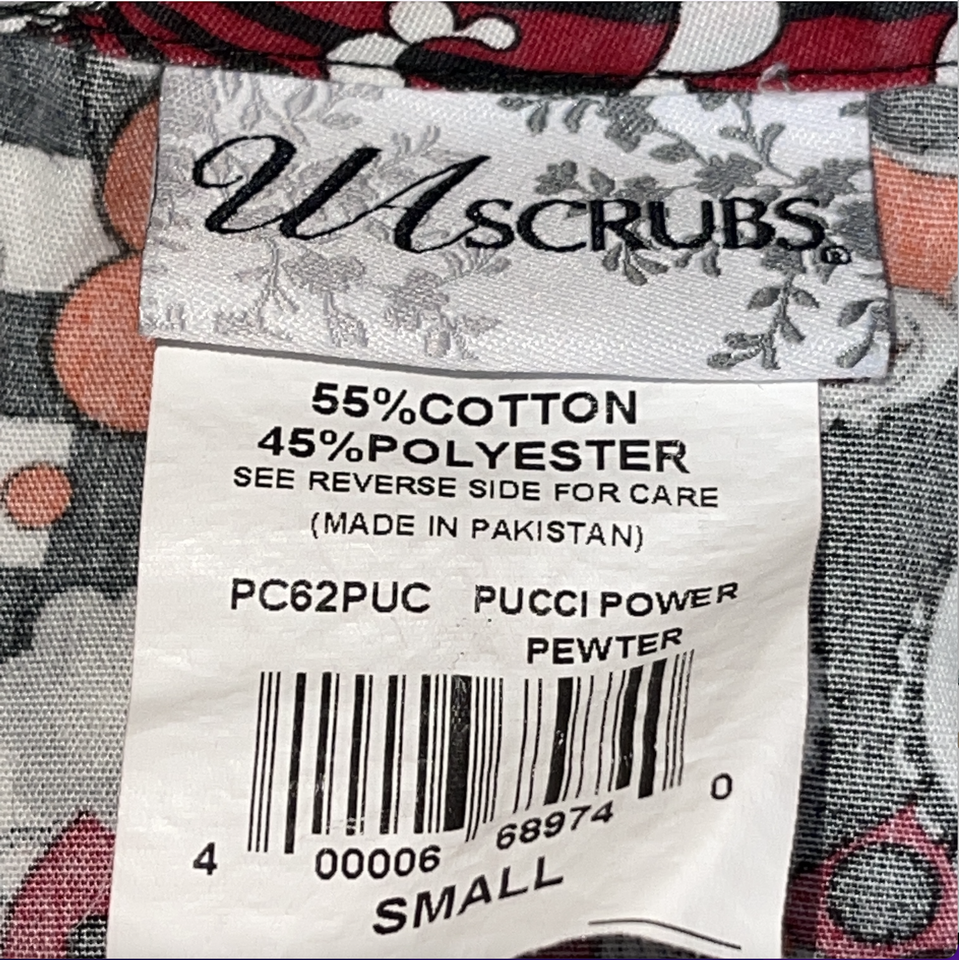 Great condition. Size tag S Small. Measures 22 inches across the chest and 26 inches overall length. Super pretty bright vibrant scrub top shirt! Please see all gallery photos. We are a smoke free, pet friendly home. Have a great day!