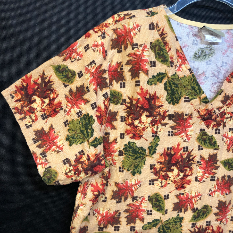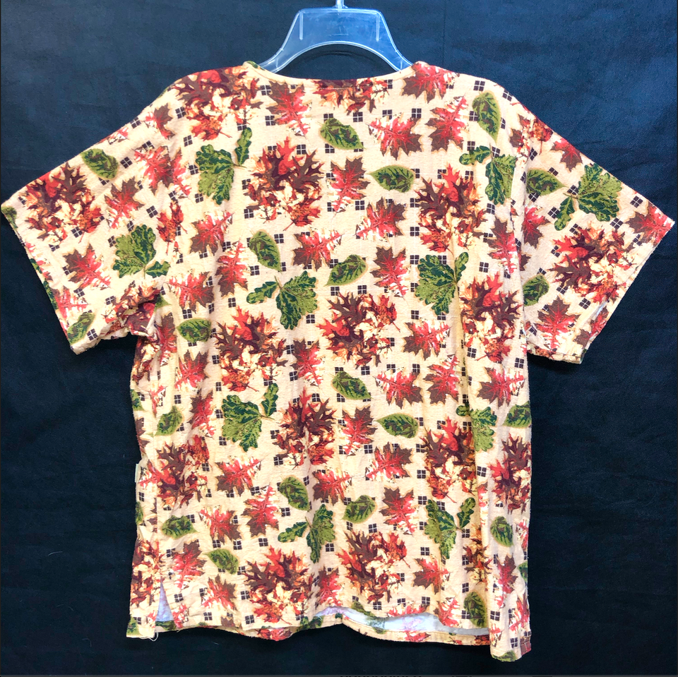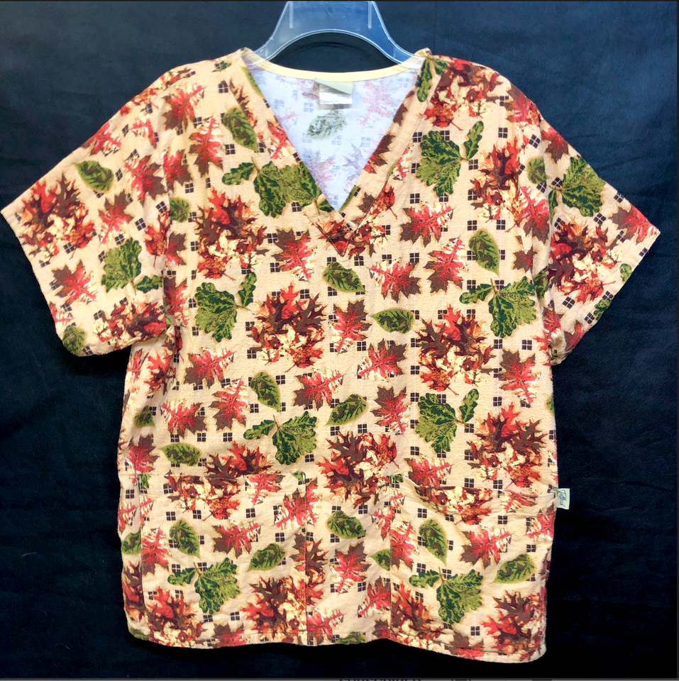 Tafford Flannel Cotton Scrub Shirt Medium Fall Autumn Leaves Harvest Nurse Vet
