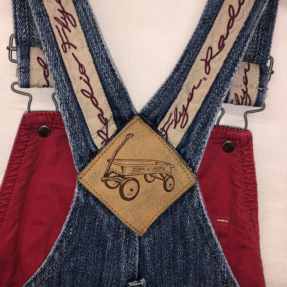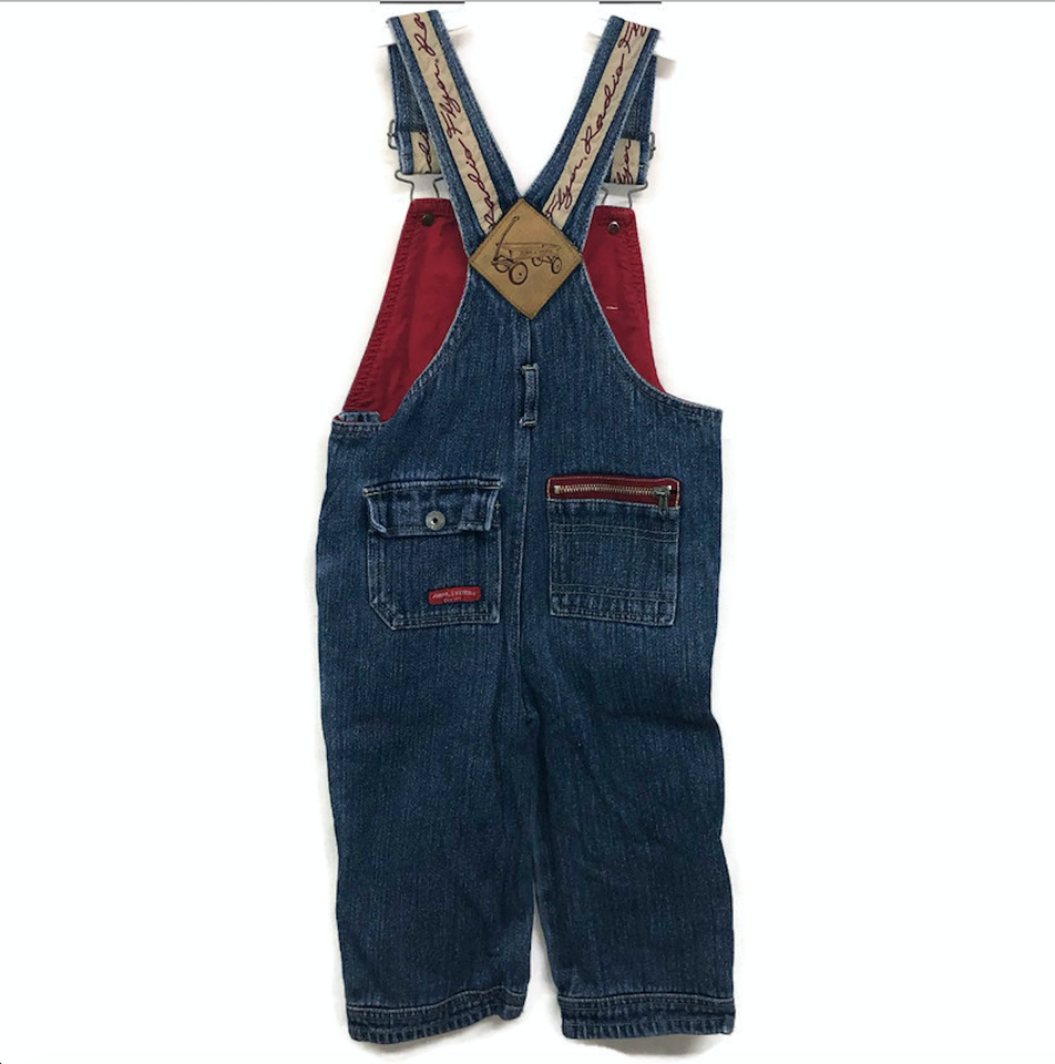Rare Radio Flyer Toddler Boy Girl Jeans Bib Long Overalls Wagon Details Sz 3T