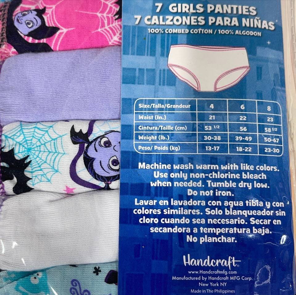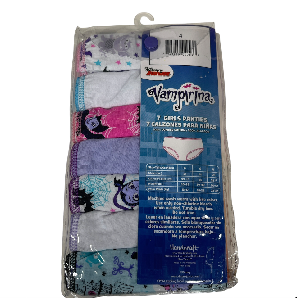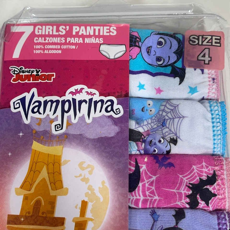 Disney Girls' Vampirina Panties 7-Pack Cotton Size 4 New in Package 7 Pair Girls