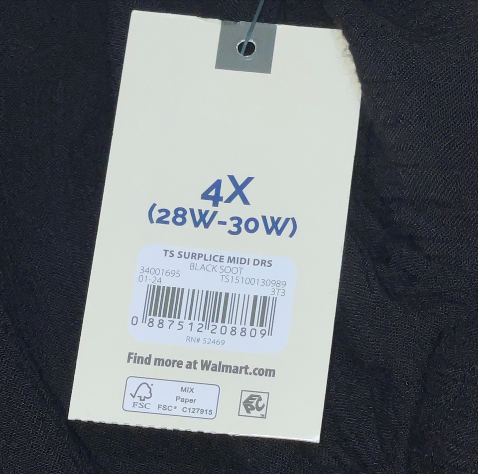 New With Tags Women´s Terra & Sky Surplice Midi Dress Plus Size 4X Black