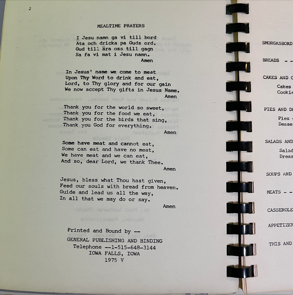 St. Paul Lutheran Church Cookbook Vintage 1975 Warren Pennsylvania Swedish