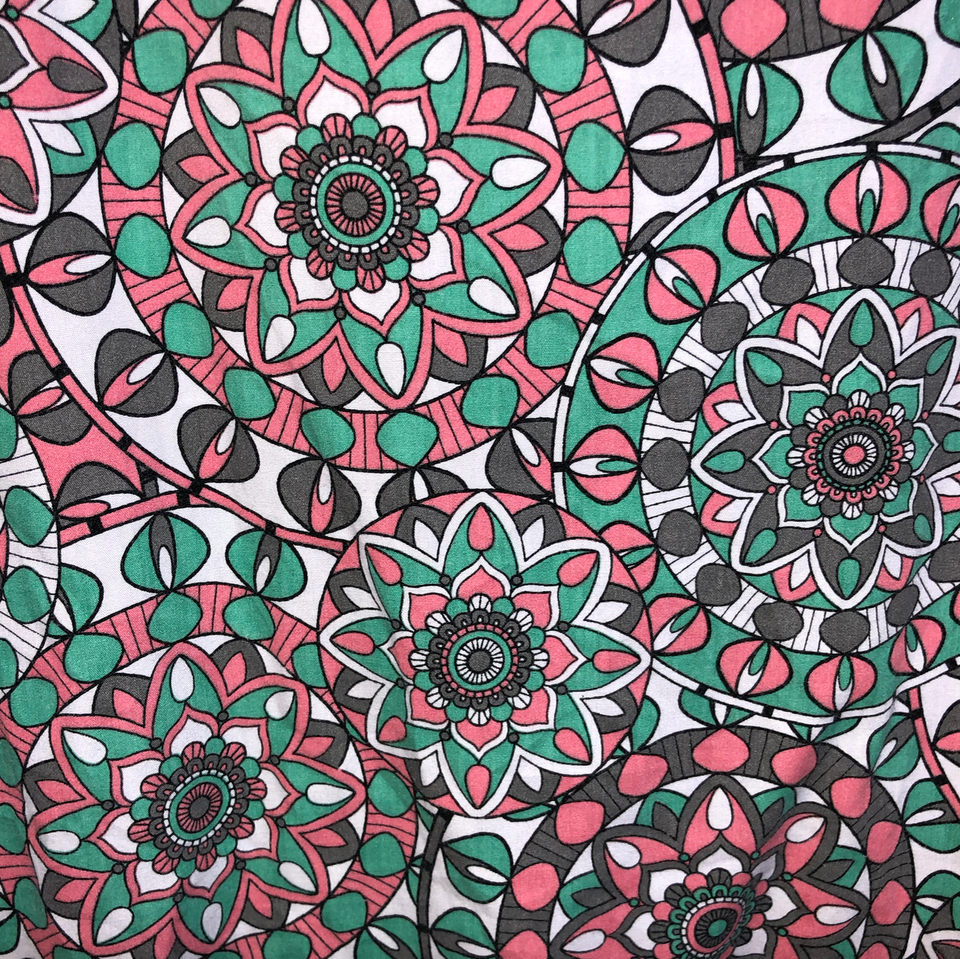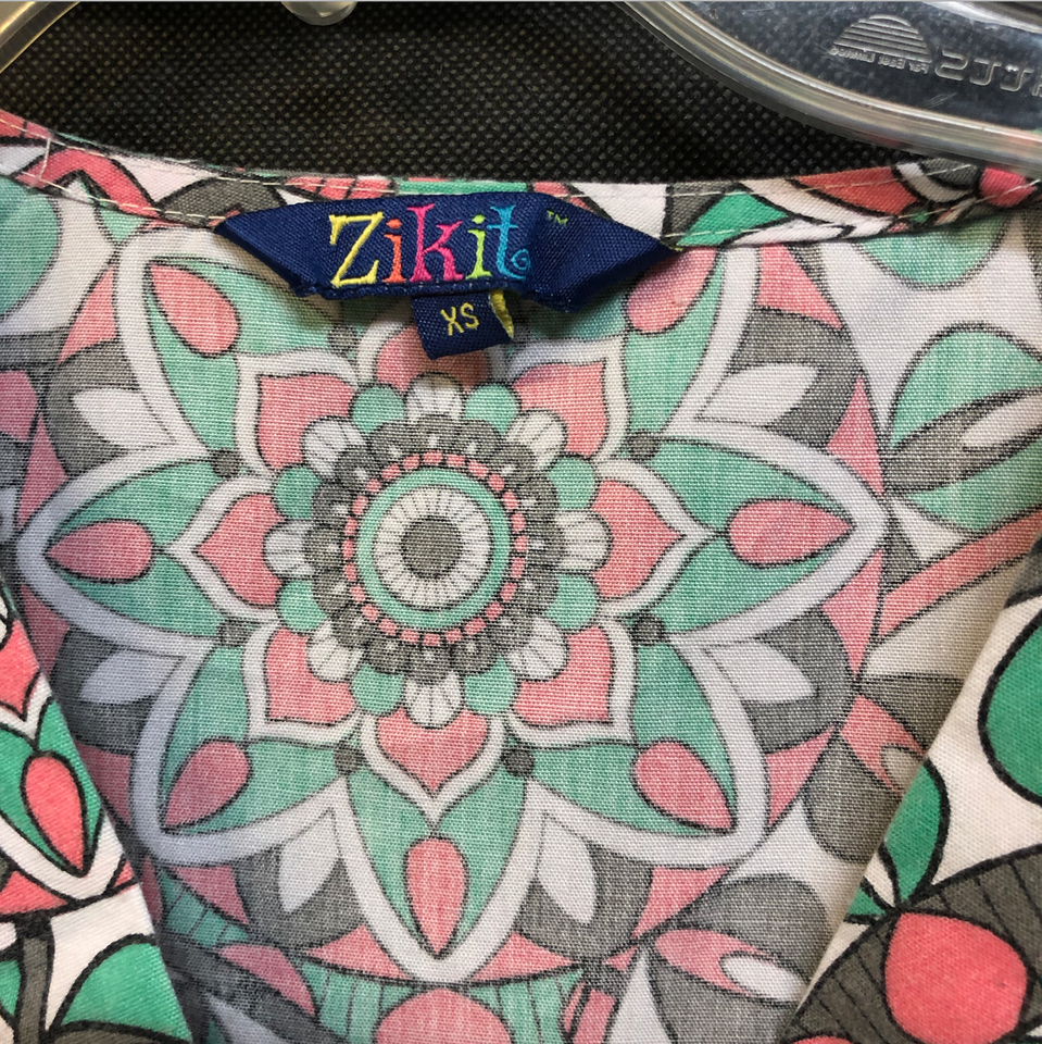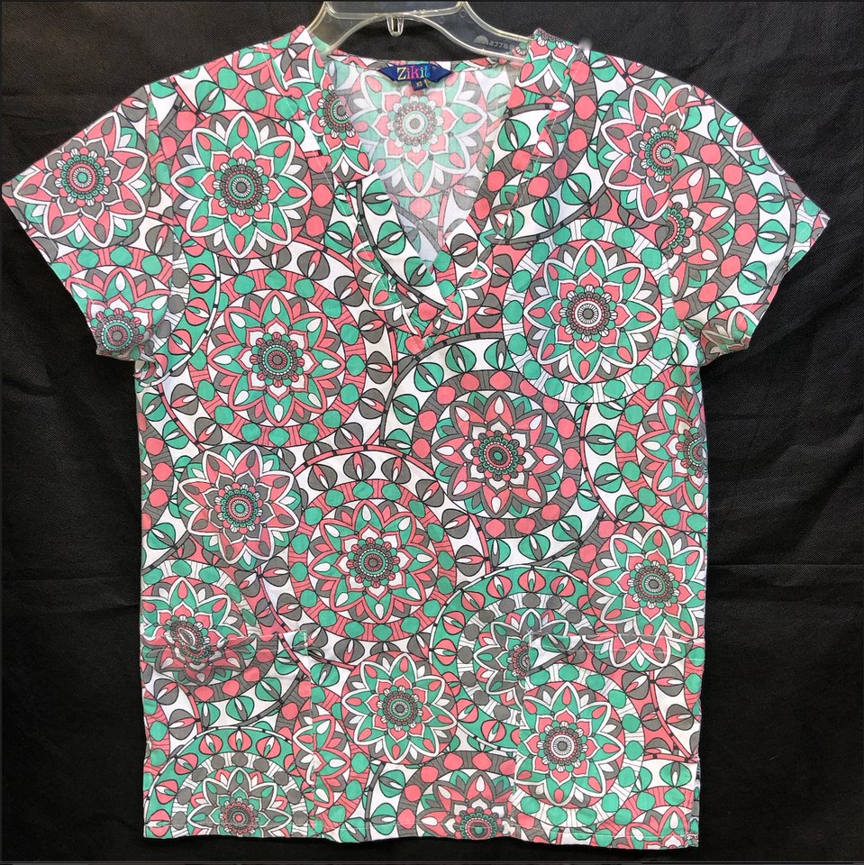 Zikit XS Scrub Shirt Coral Green Geometric Print Nurse Vet Tech Xray Therapy