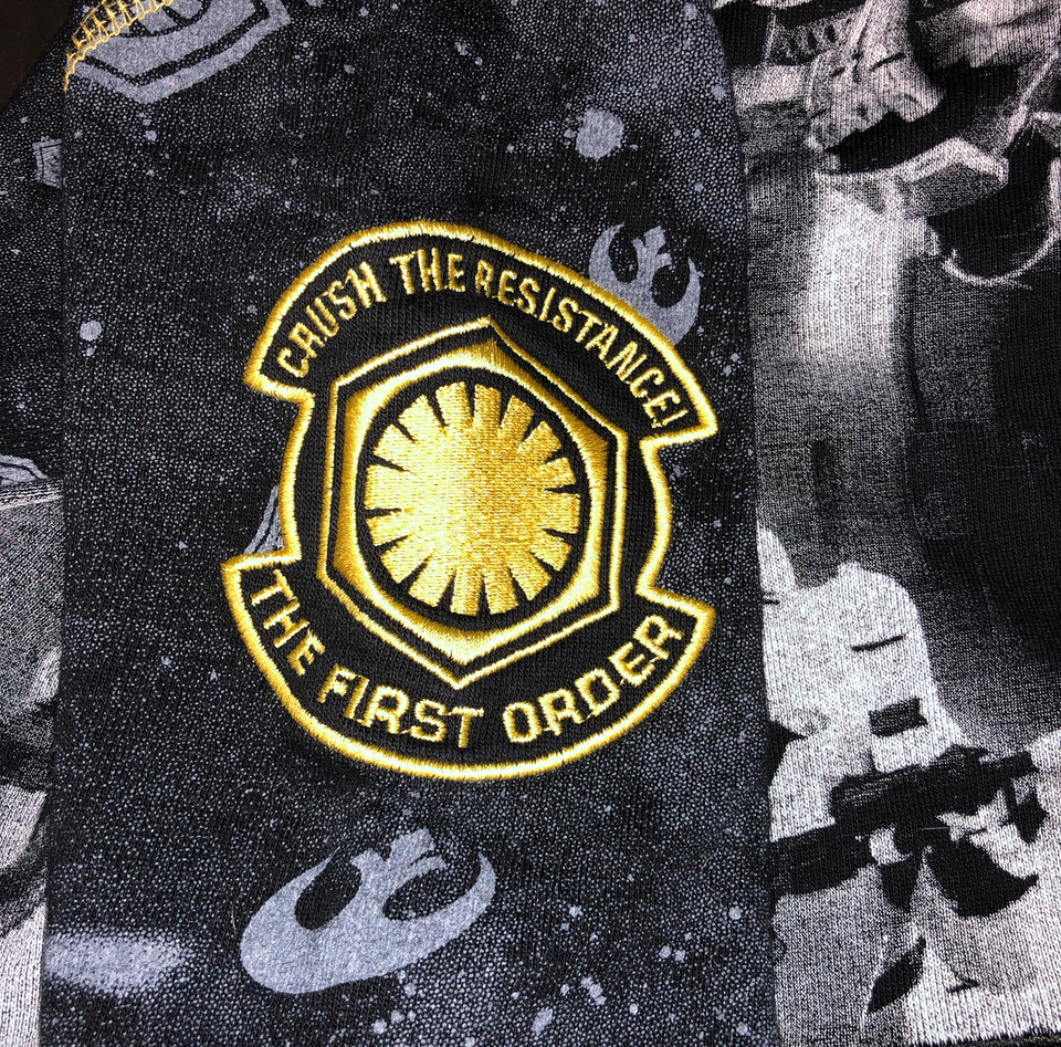 Excellent condition. Super cool " Crush the Resistance The First Order" embroidered patch on one sleeve. Size tag 7 8, measures 14.5 inches across the chest and 19.5 inches overall length. Please see all photos. We are a smoke free, pet friendly home. Have a great day