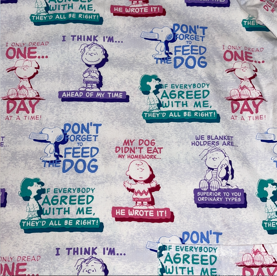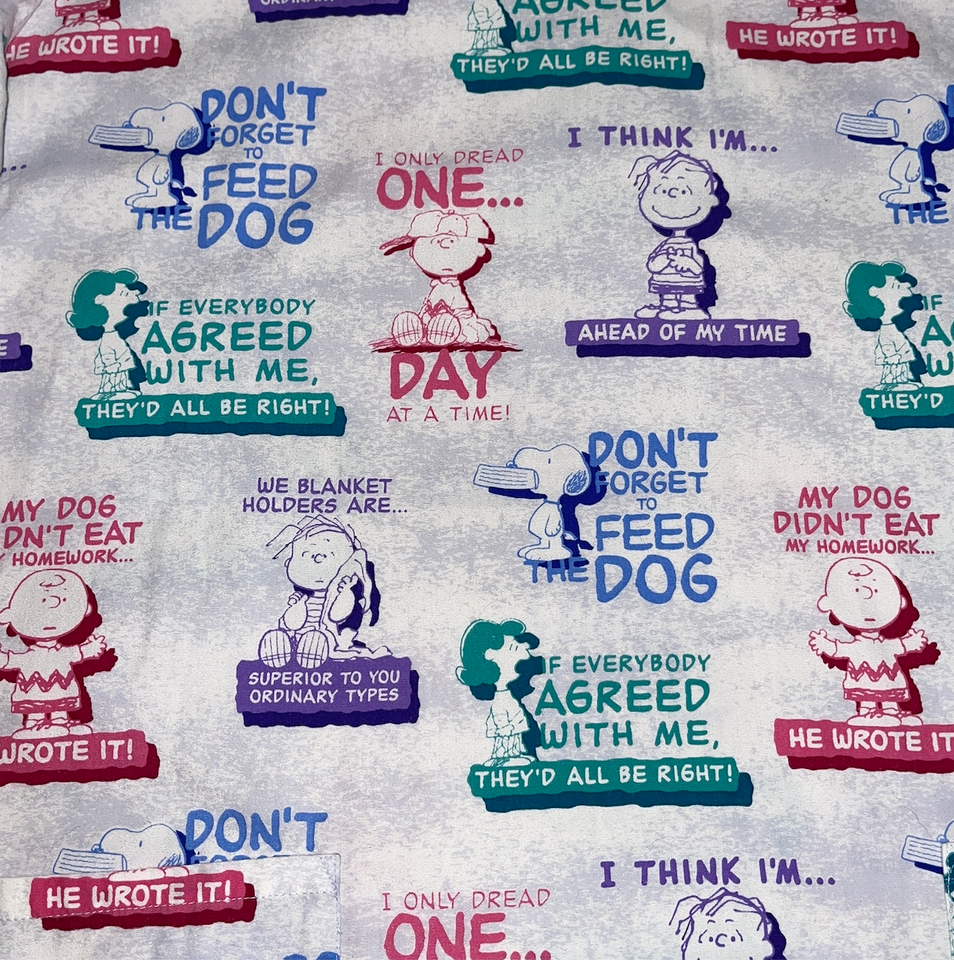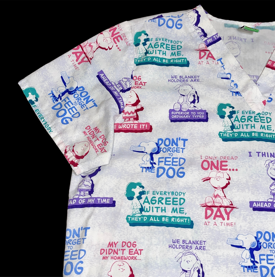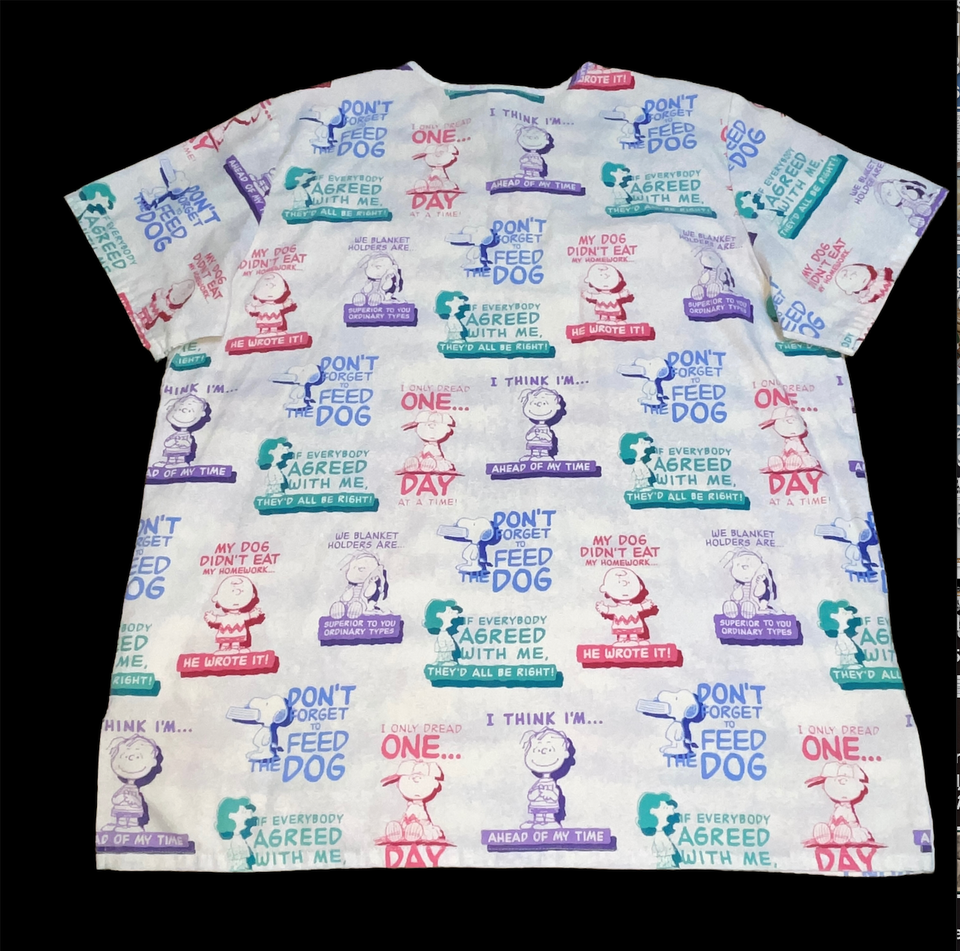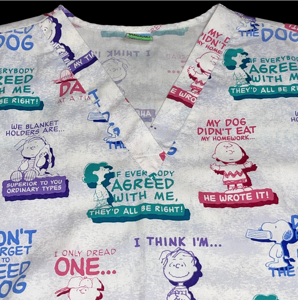 Snoopy Peanuts Charlie Brown Linus Lucy Scrub Top Shirt Sz Large White