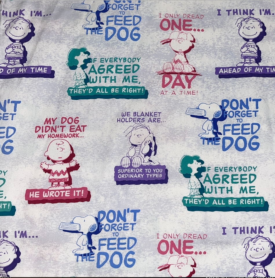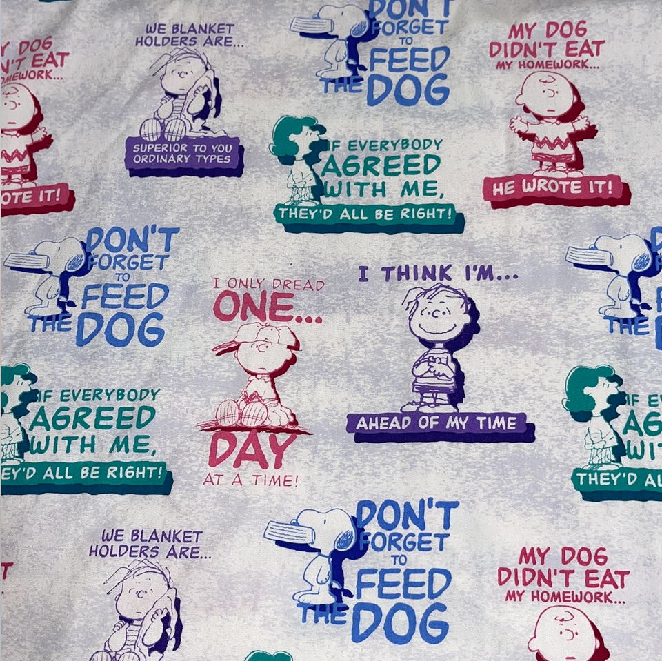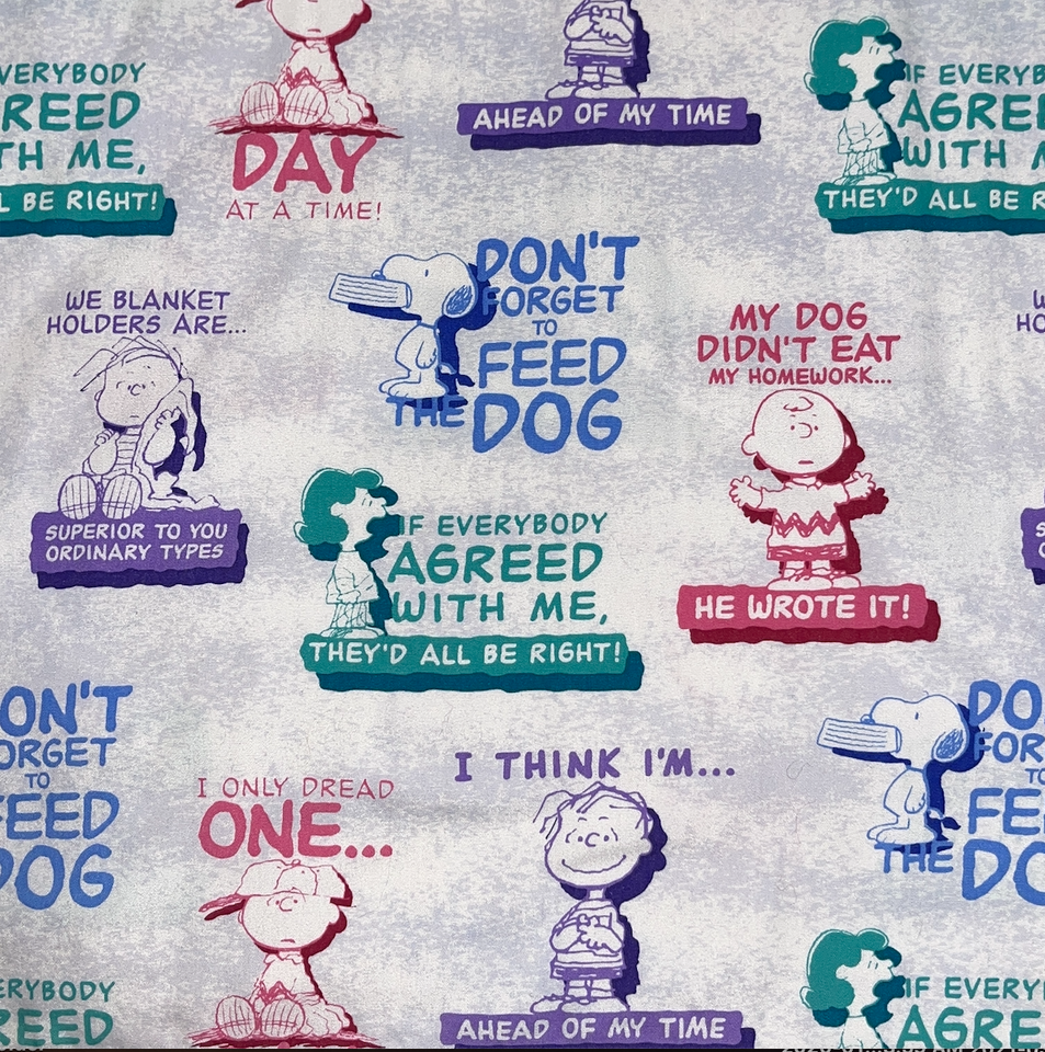 Very good condition. Size tag missing, approximately a L Large. Measures 24 inches across the chest and 29 inches overall length. Super fun Peanuts shirt with lots of cool sayings! Please see all photos. We are a smoke free, pet friendly home. Have a great day!