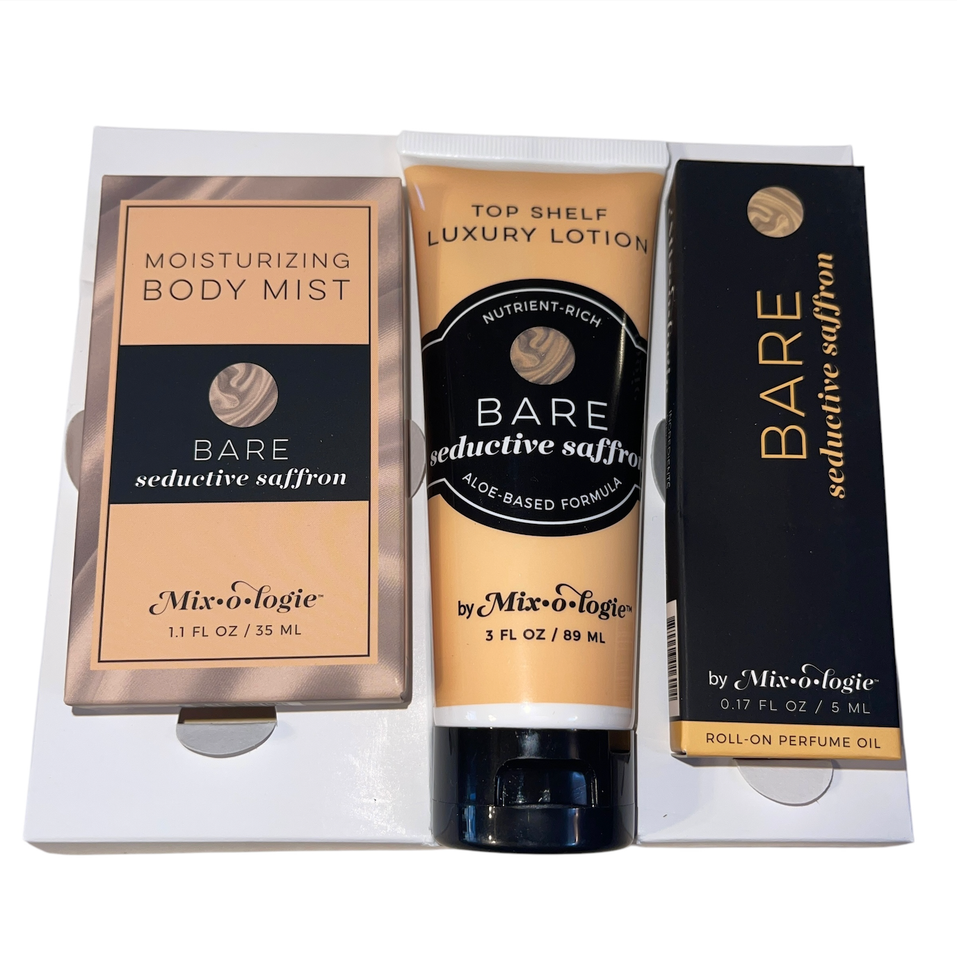 Mixologie Perfume Oil Body Mist Luxury Lotion Set BARE Seductive Saffron New Lot