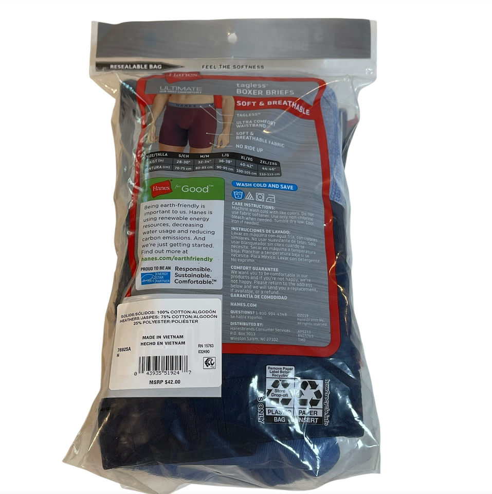 New in package. Includes 5 pairs of men's size medium or 32 - 34 underwear boxer briefs. Features: Soft breathable, no ride up, ultra comfort waistband, wicking cool comfort fabric, tagless. Please see all gallery photos. We are a smoke free, pet friendly home. Have a great day!