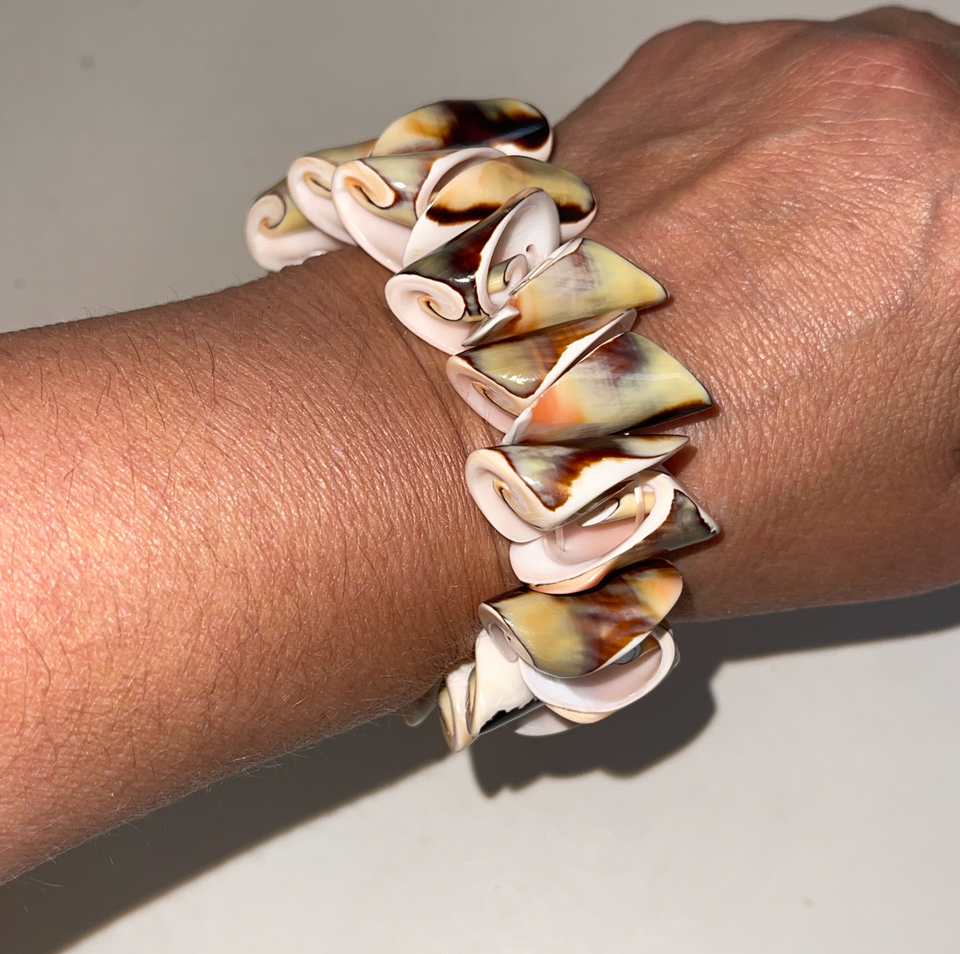 Vtg Natural Pink Peach Luhuanus Spiral Cone Puka Style Shell Necklace Bracelet