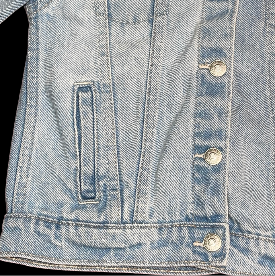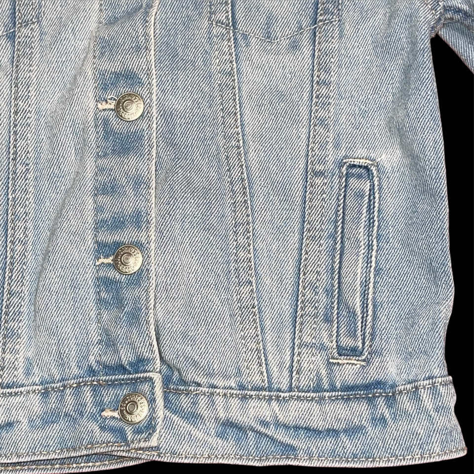 Excellent condition. Would be great for a girl or a boy. Size tag 5 to 6 years. Light denim wash with red tab. Snap up front. Measures 13.5 inches across the chest and 16 inches overall length. Your child will be styling in this jacket! Please see all gallery photos. We are a smoke free, pet friendly home. Have a great day!
