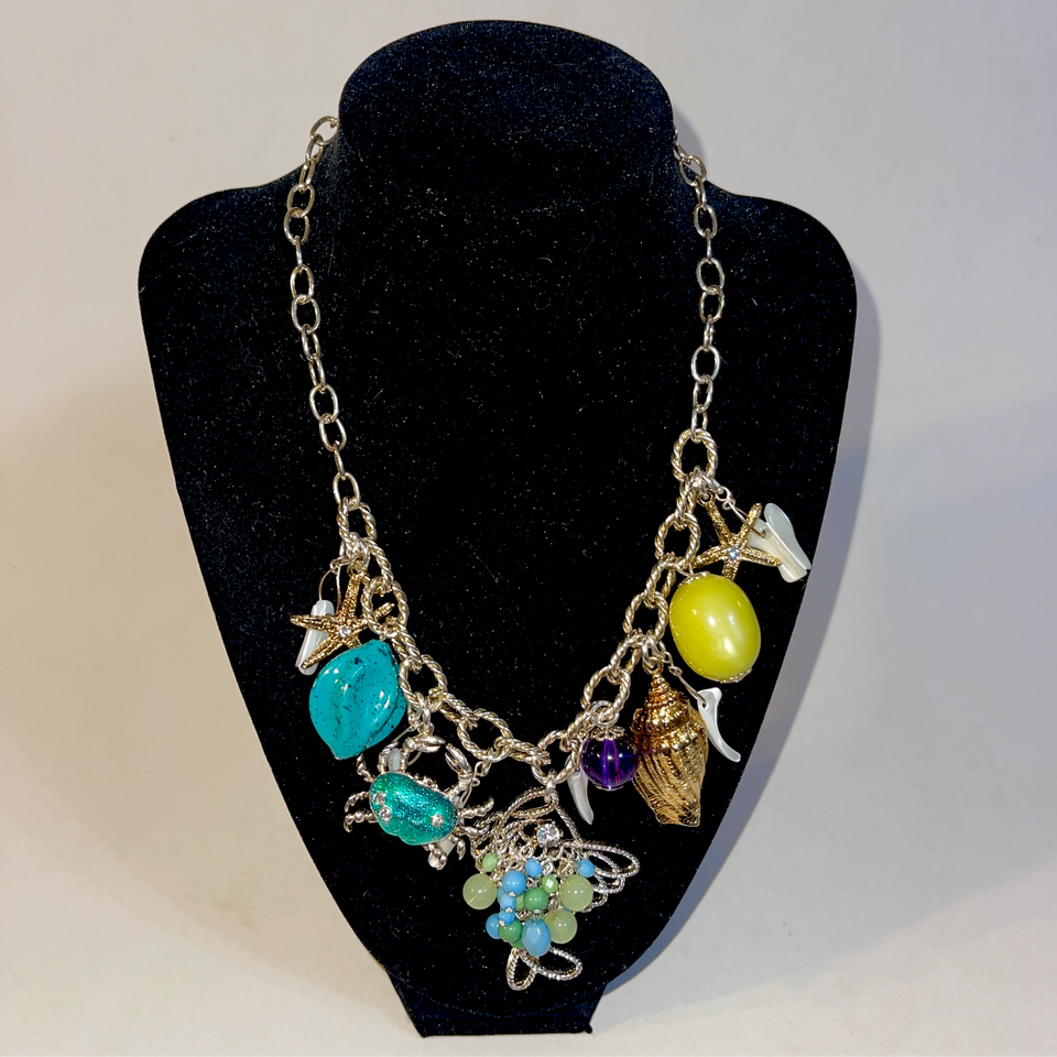 Vtg Gerard YOSCA Sea Life Fish Crab Starfish Shell Rhinestone Statement Necklace