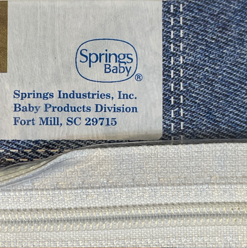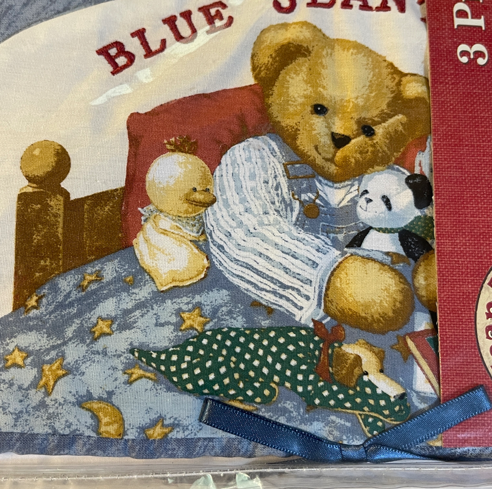 Vintage Springs Baby Blue Jean Teddy Panda Bear Blocks Diaper Stacker Blanket