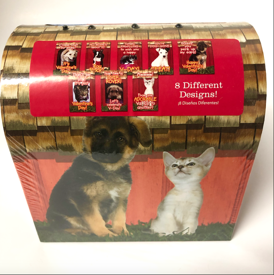 New sealed puppies and kittens valentine's day cards. The keepsake mailbox lights up. Super cute. Includes 32 cards. Please see all photos. We are a smoke free, pet friendly home. Have a great day!