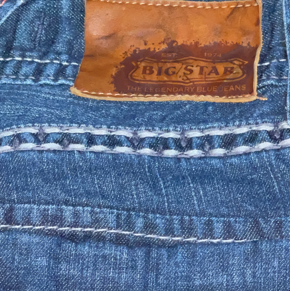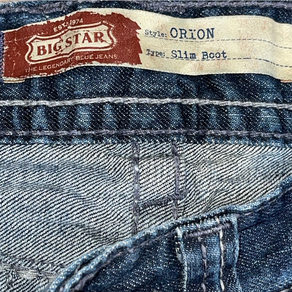 Mens BIG STAR Buckle Orion Slim Boot Stitch Medium Wash Denim Blue Jeans 30 x 30