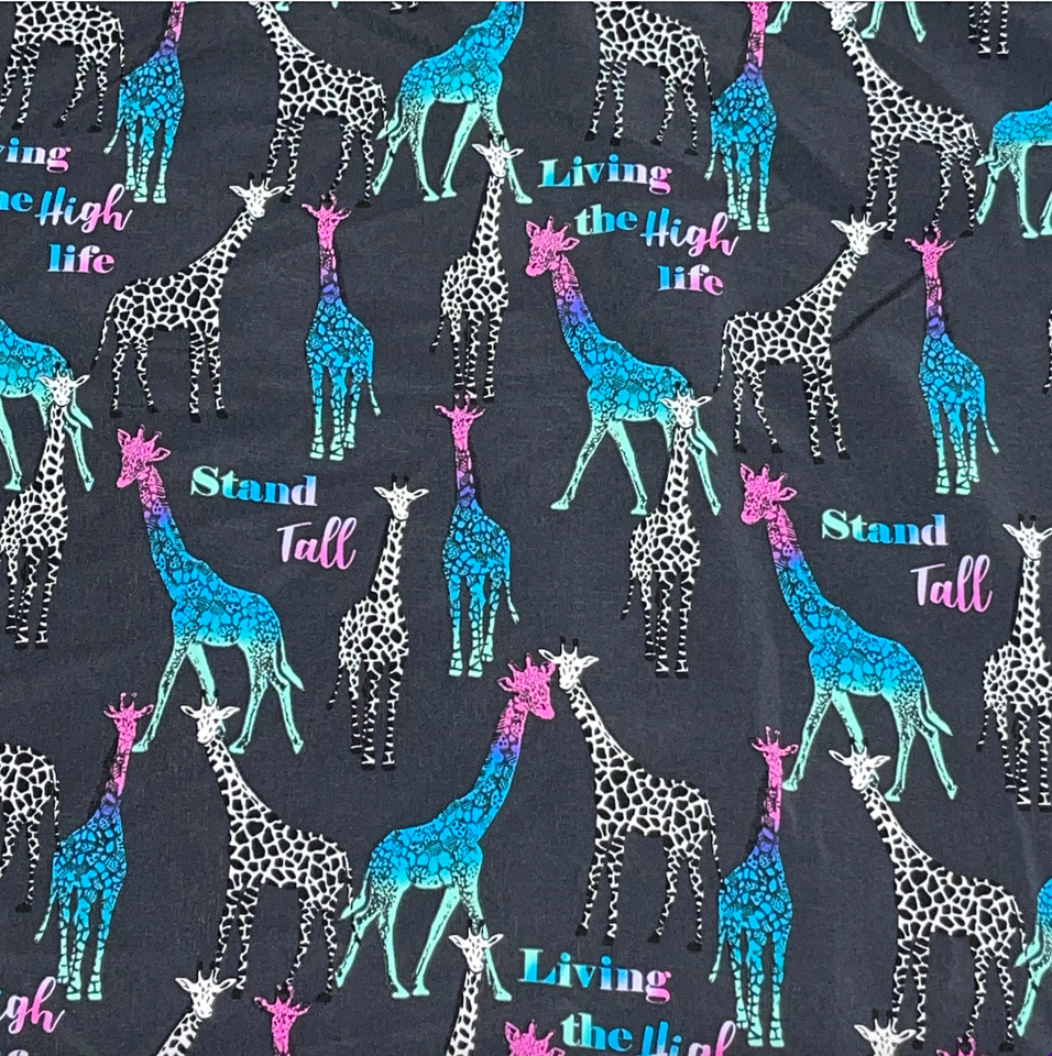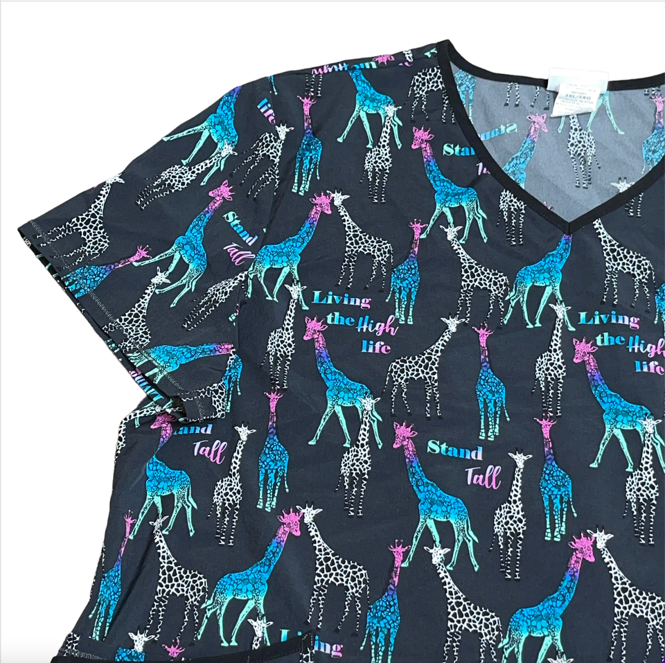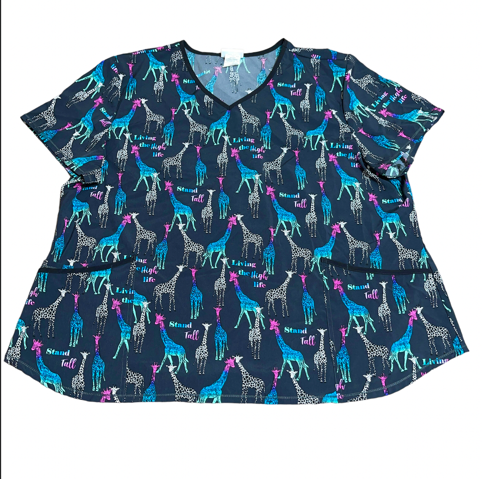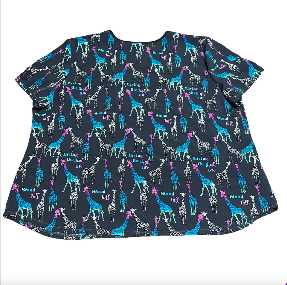 Gray Pink Blue Giraffe Print Plus Sz 3XL Scrub Shirt Top Nurse Vet Xray Tech