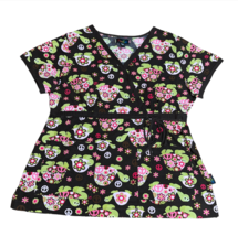 Great condition. ****READ**** size tag Large but measures closer to a size medium M. Measures 22 inches across the chest and 26.5 inches overall length. Chocolate brown main color. Please see all gallery photos. Features: cotton, short sleeve, tie in front, front lower pockets. Super cute scrub shirt top! Perfect top for any peace loving turtle fan! Perfect for nurse, vet, tech, X-ray, etc. We are a smoke free, pet friendly home. Have a great day!