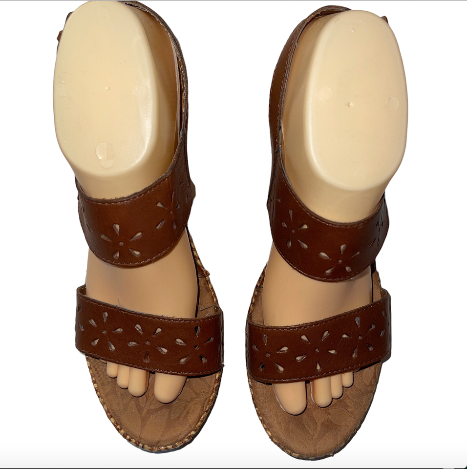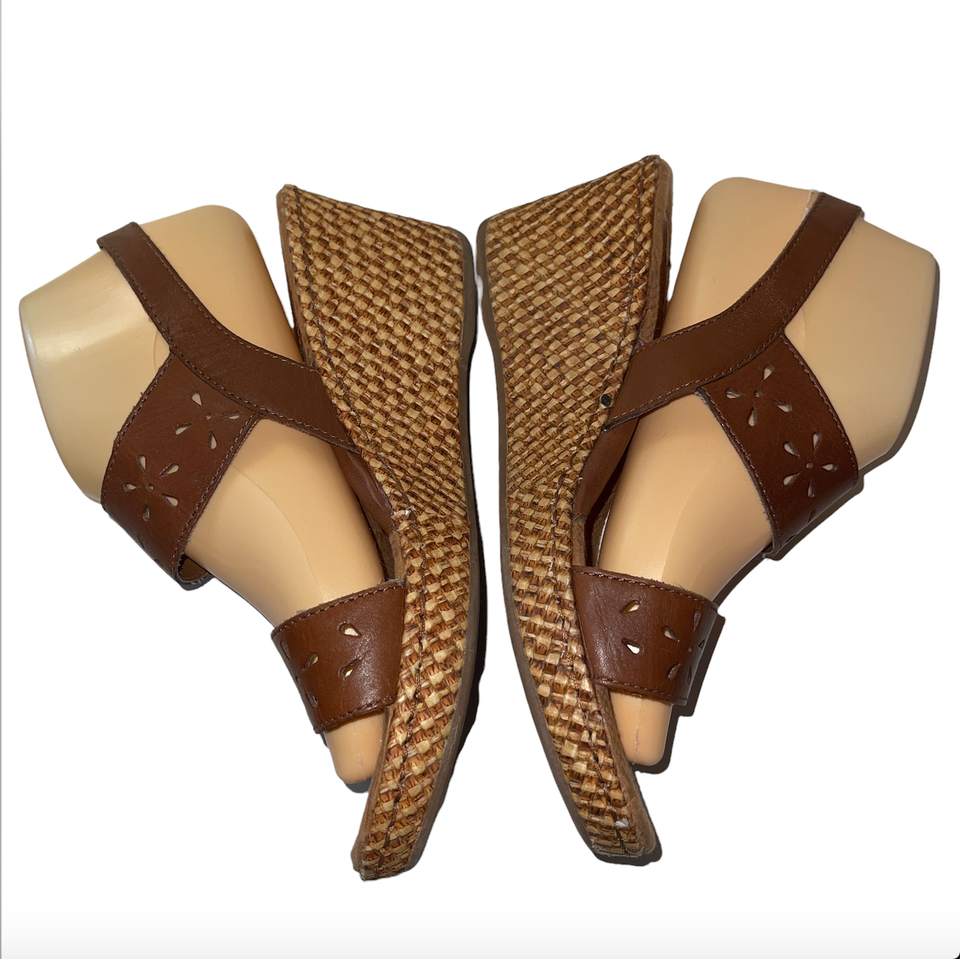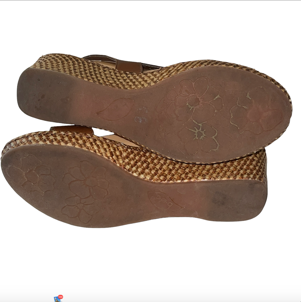 boc Born Concept Woman Size 9 Wedge Heels Tan Weave Buckle Sling Back Sandals