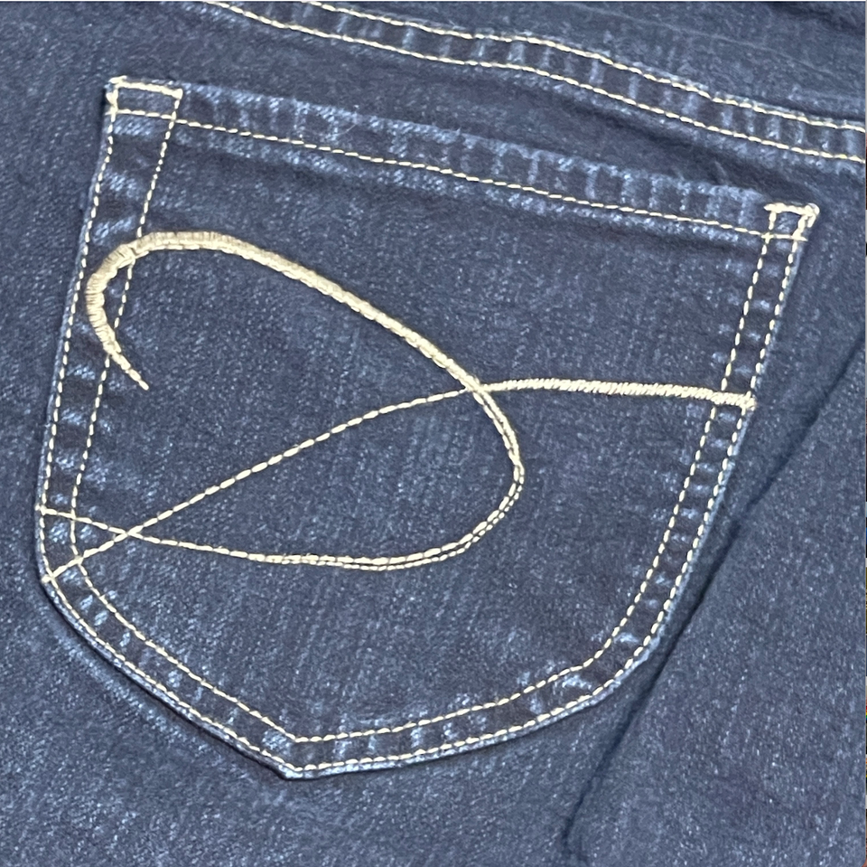 Excellent condition. Dark wash. Size tag 3, measures 36 inch waist by 29 inch inseam, full measurements in photos. Please see all gallery photos. We are a smoke free, pet friendly home. Have a great day!