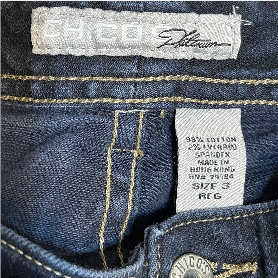 Chicos 3 Platinum Denim Jeans Womens Sz 3 Dark Wash Blue Denim Straight 36 x 29