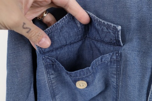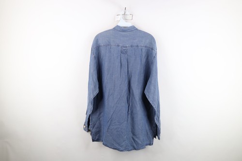 Vintage Tommy Bahama Mens Medium Faded Linen Blend Denim Collared Button Shirt