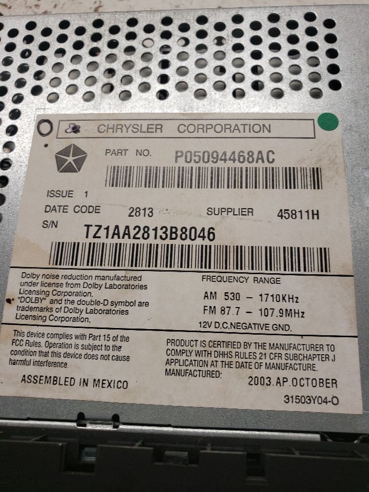 Audio Equipment Radio Receiver Radio Opt Rbp Fits 04-08 PACIFICA 1364549