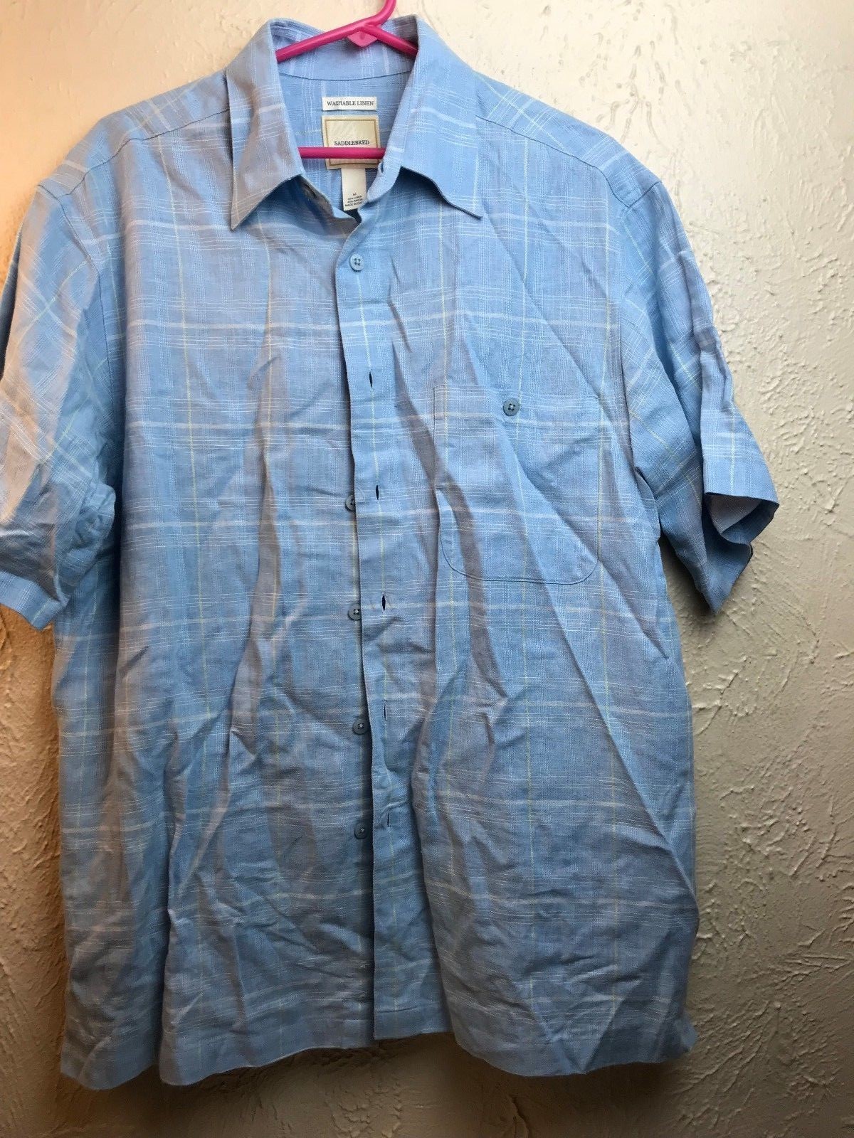 Men's Saddlebred Short Sleeve Linen Blend Button Front Shirt Size Medium