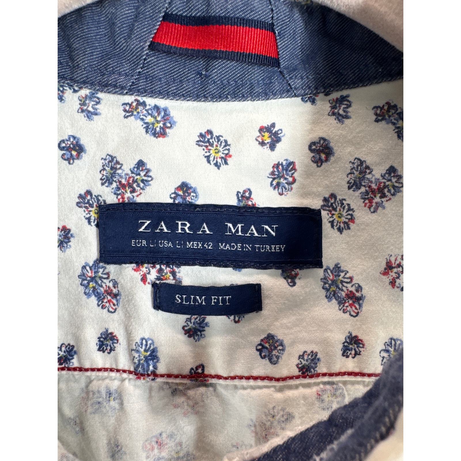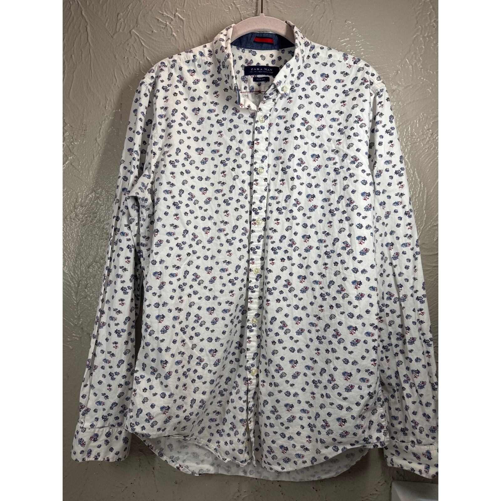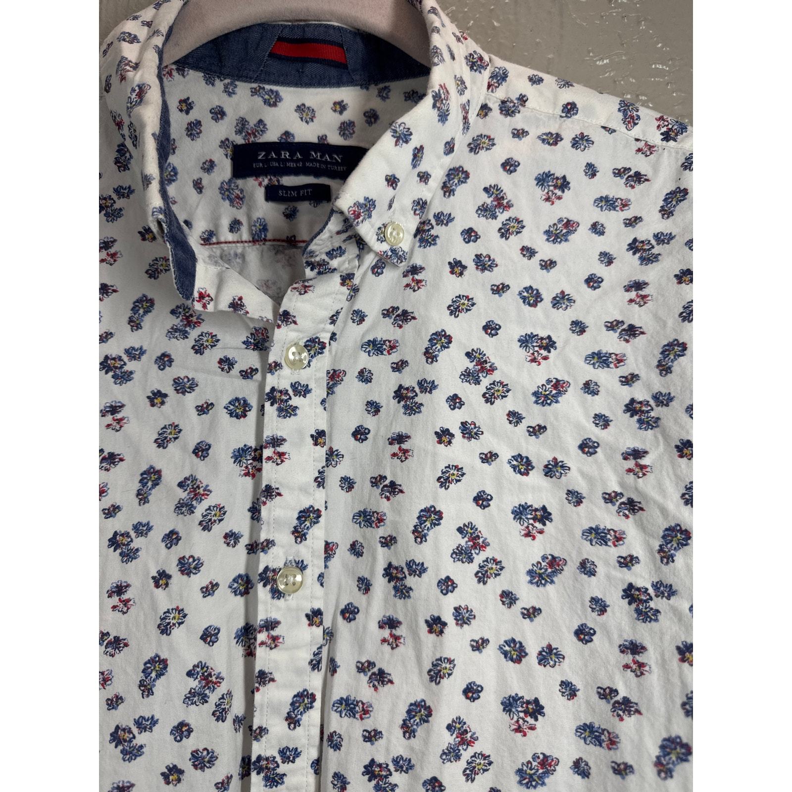 Zara Man Mens Slim Fit Floral Long Sleeve Button Down Shirt Size Large