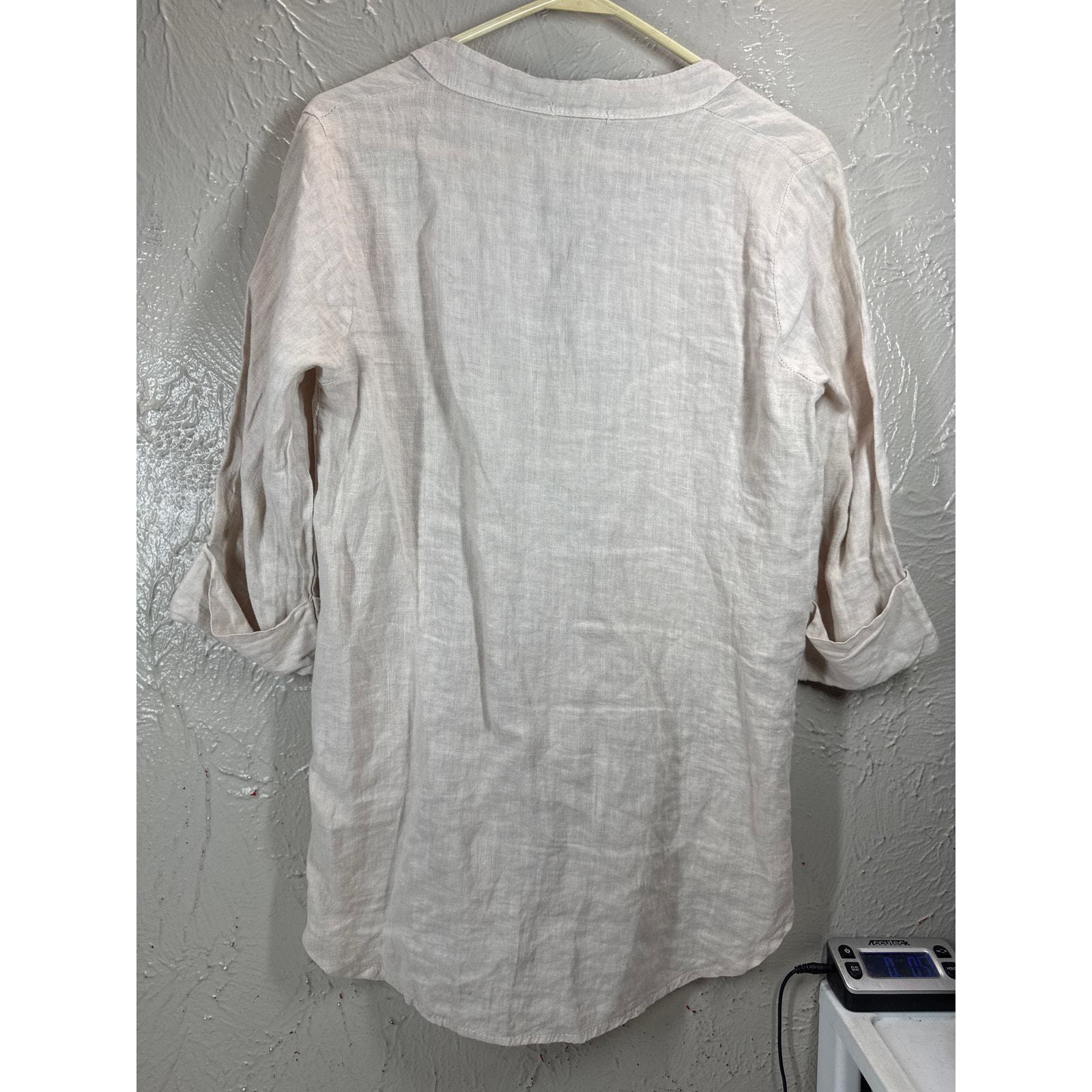 LUNGO L'ARNO Button Up Women's Beige V-Neck Cuff Sleeve 100% Linen Size Medium