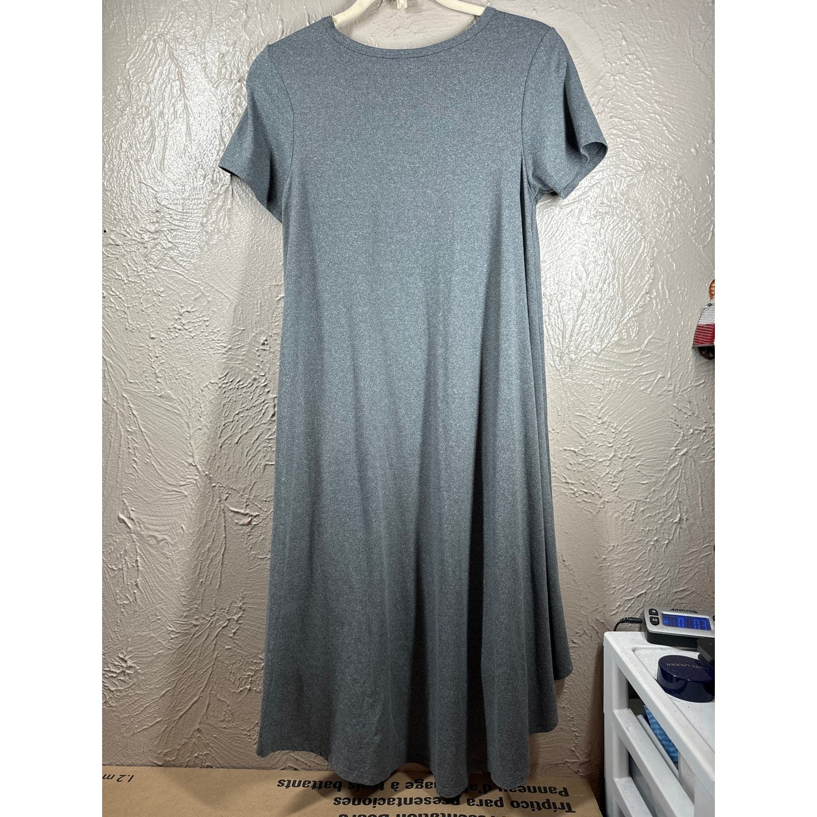 LuLaRoe Short Sleeve Round Neck Carly Polyester Gray Stretch Swing Dress Sz XXSThis item has been cleaned pers used clothing policy.