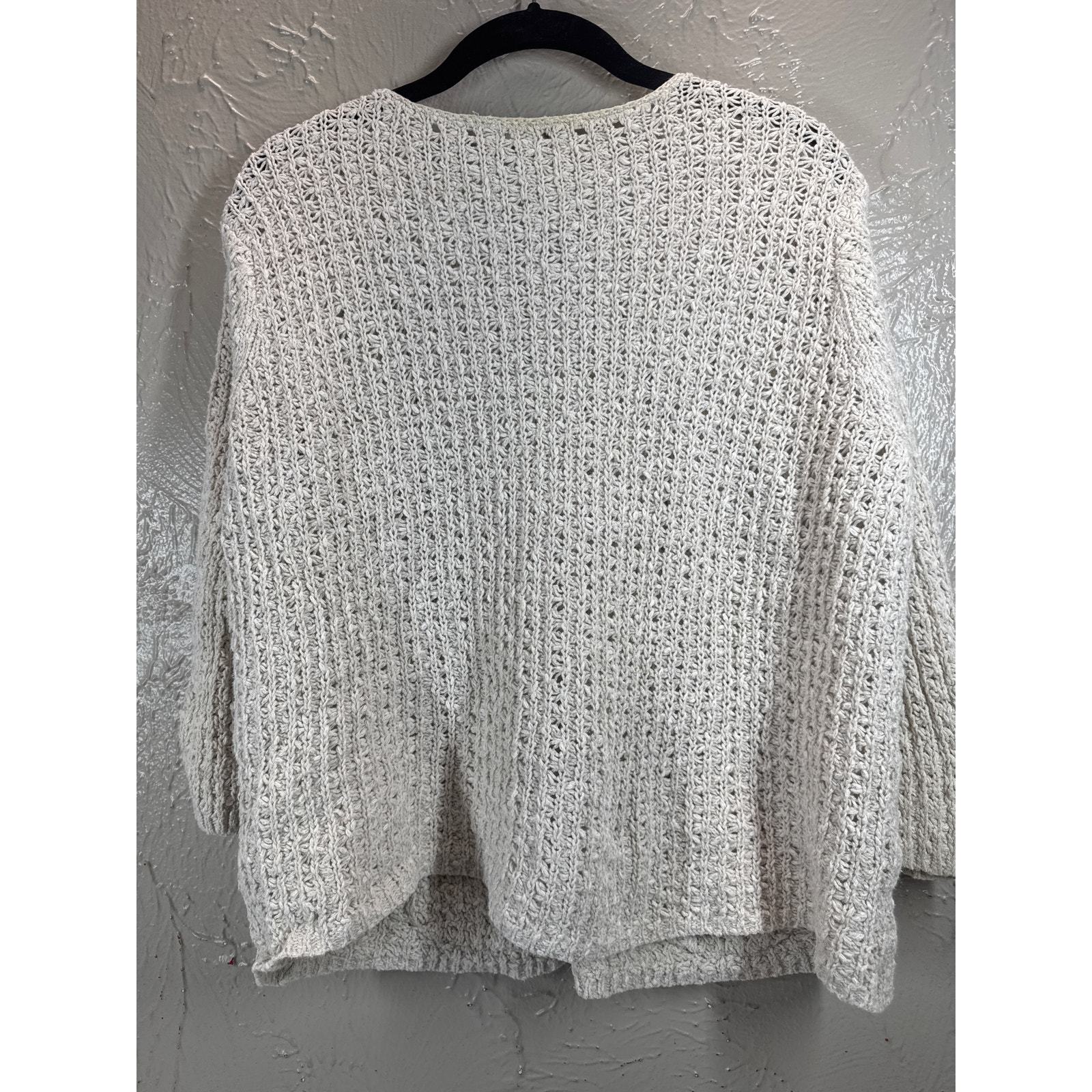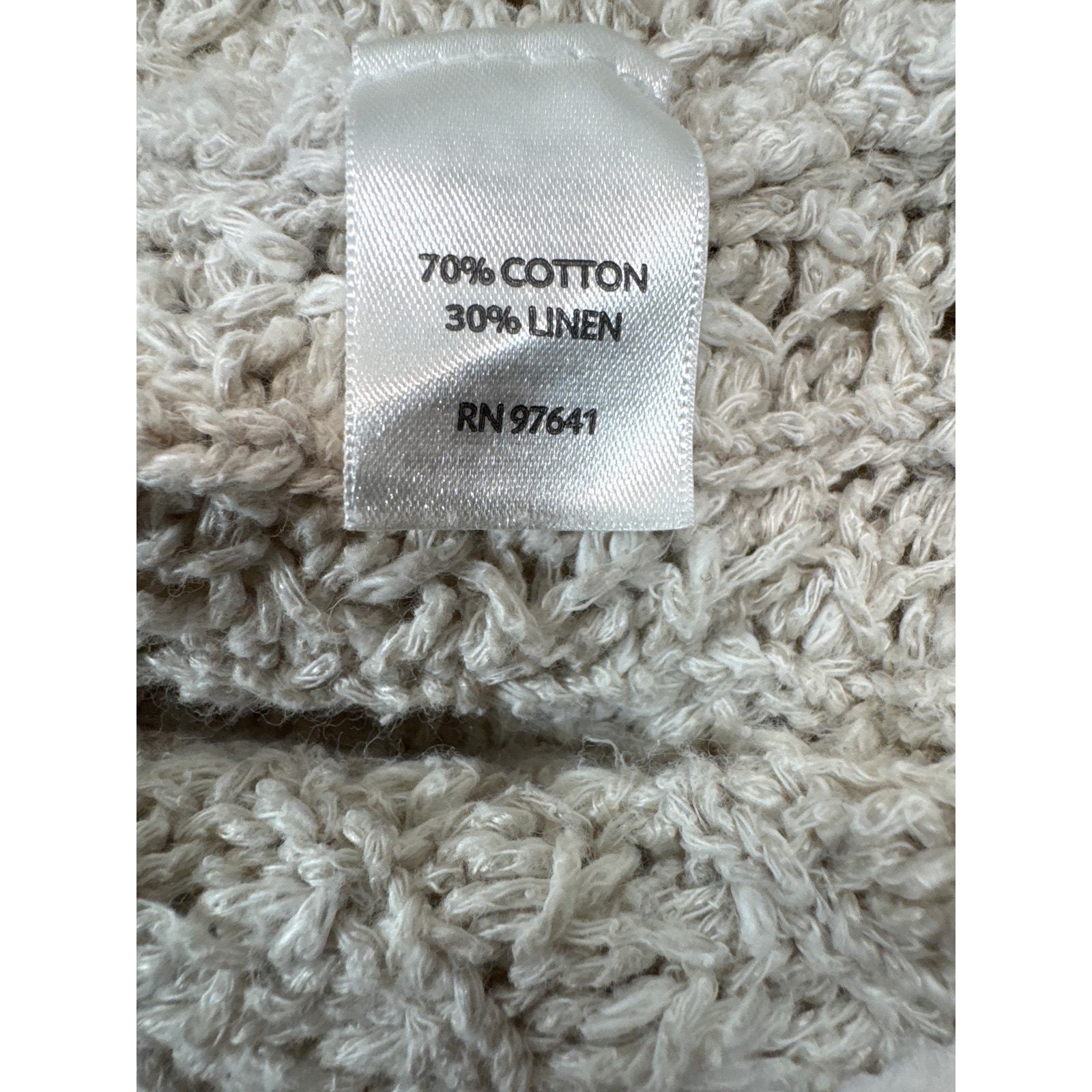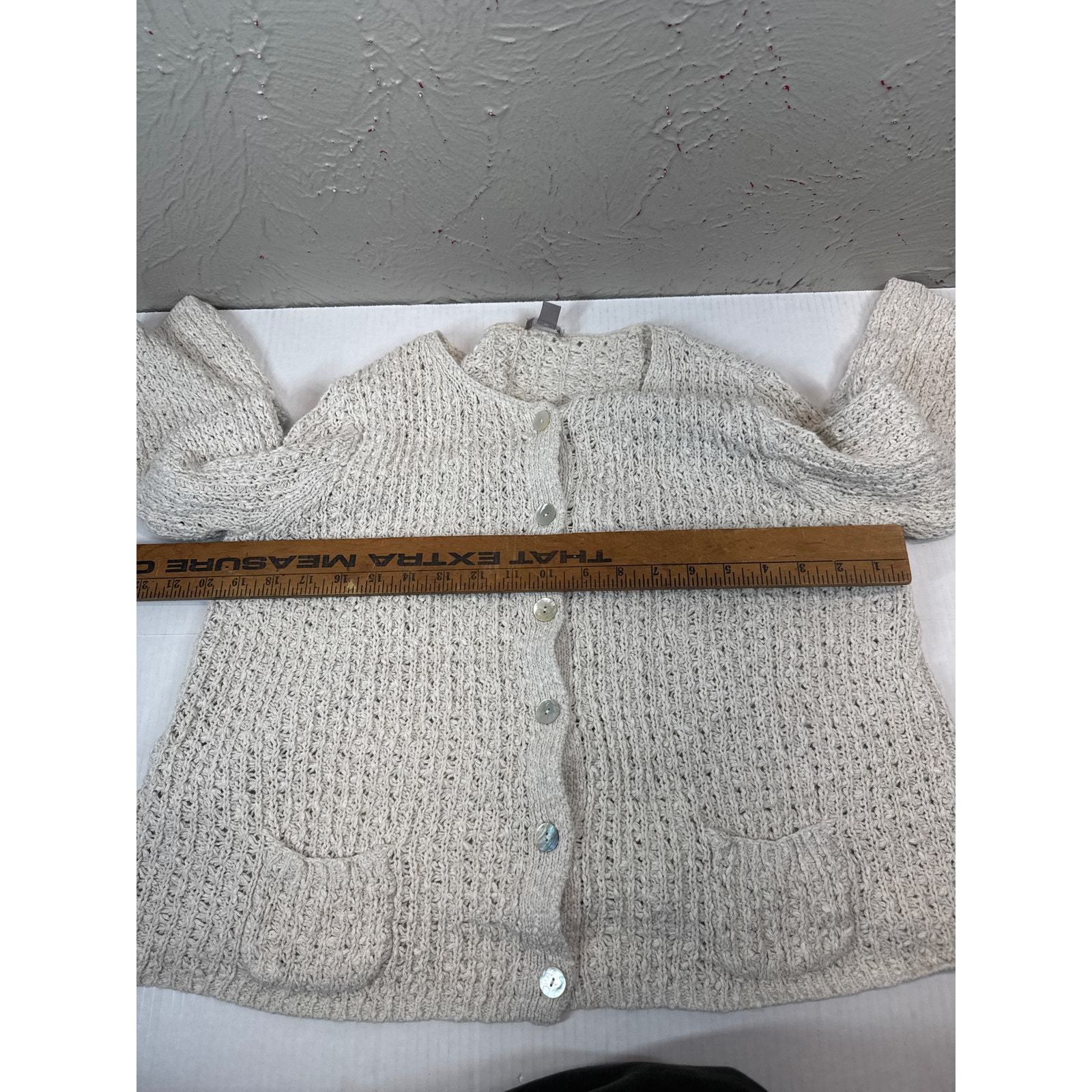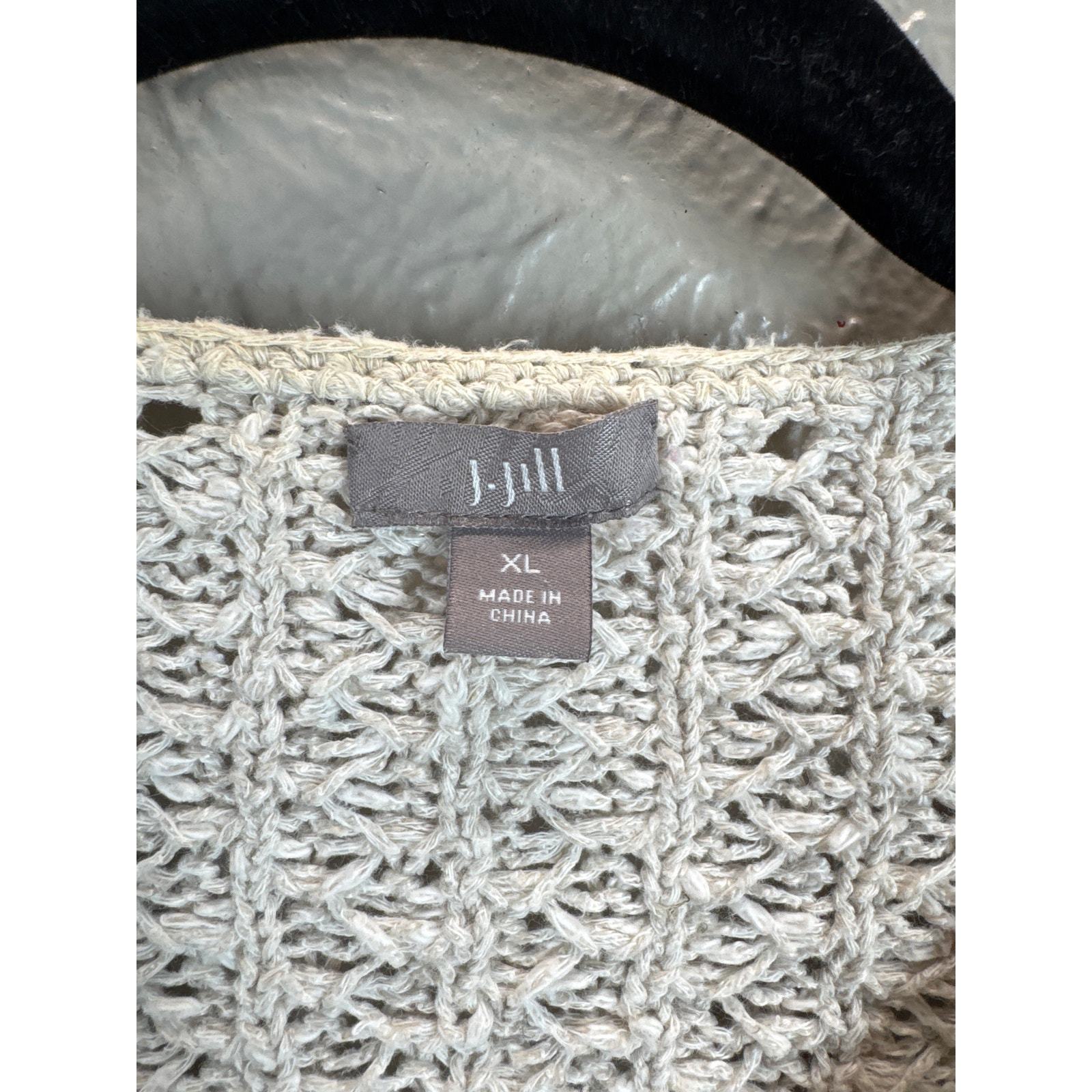 J Jill Oatmeal Linen Blend Cardigan Sweater Mother Pearl Button Open Knit XL