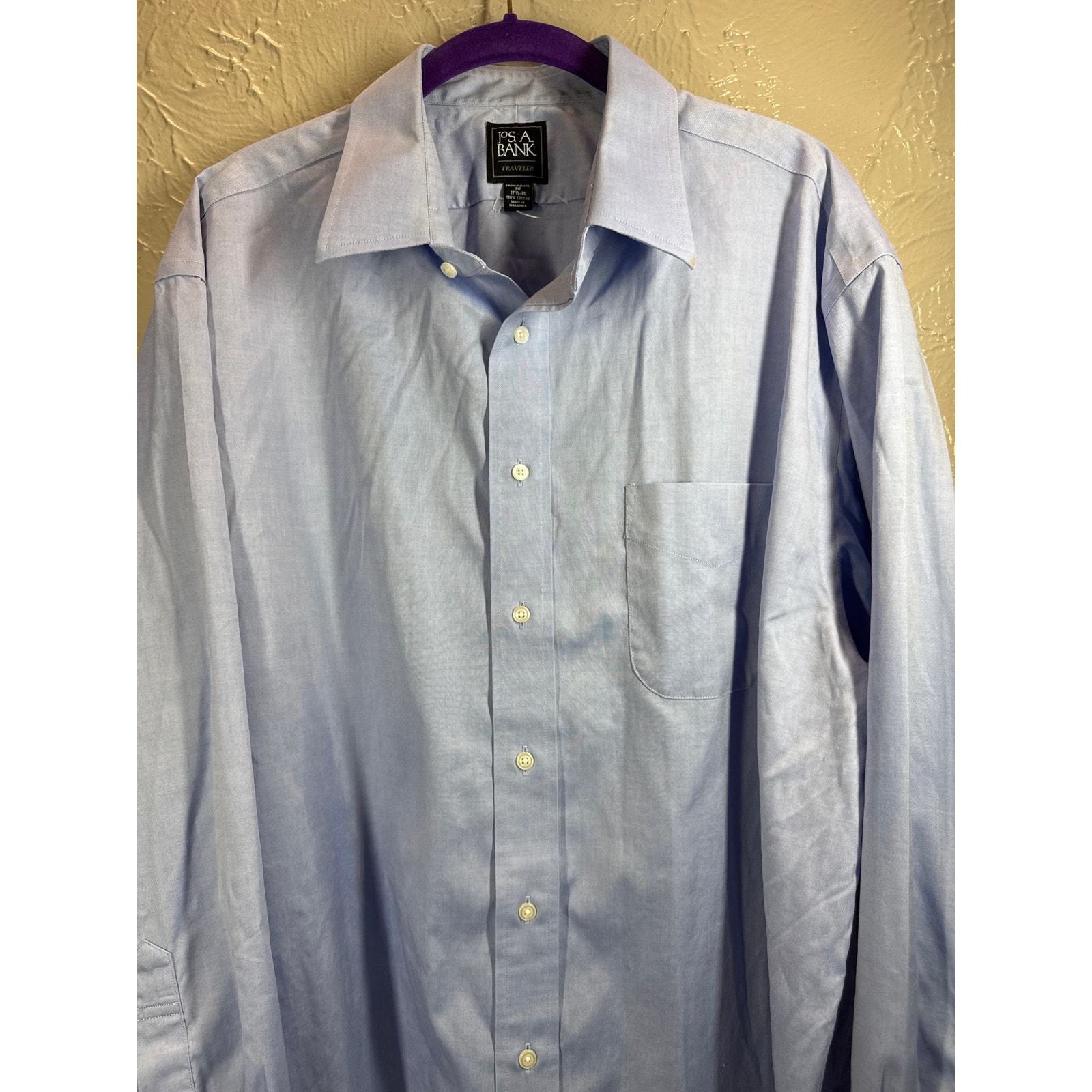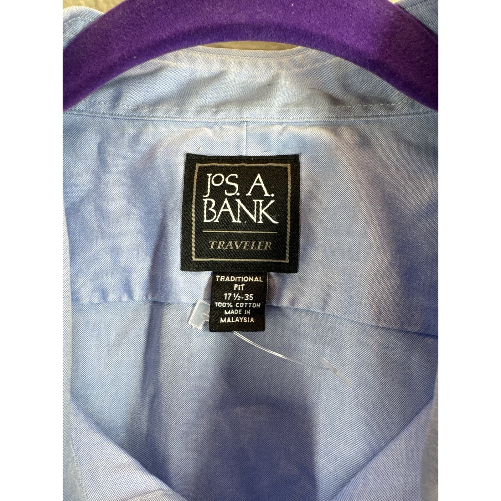 Jos A Banks Traveler Mens Traditional Fit Cotton Blue Dress Shirt Size 17.5 - 35