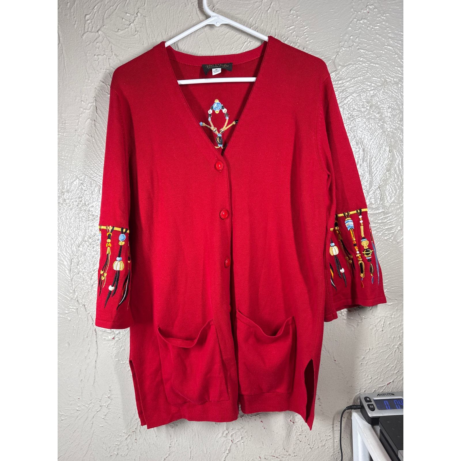 Bob Mackie Womens Wearable Art Embroidered Dreamcatcher Cardigan Size Medium