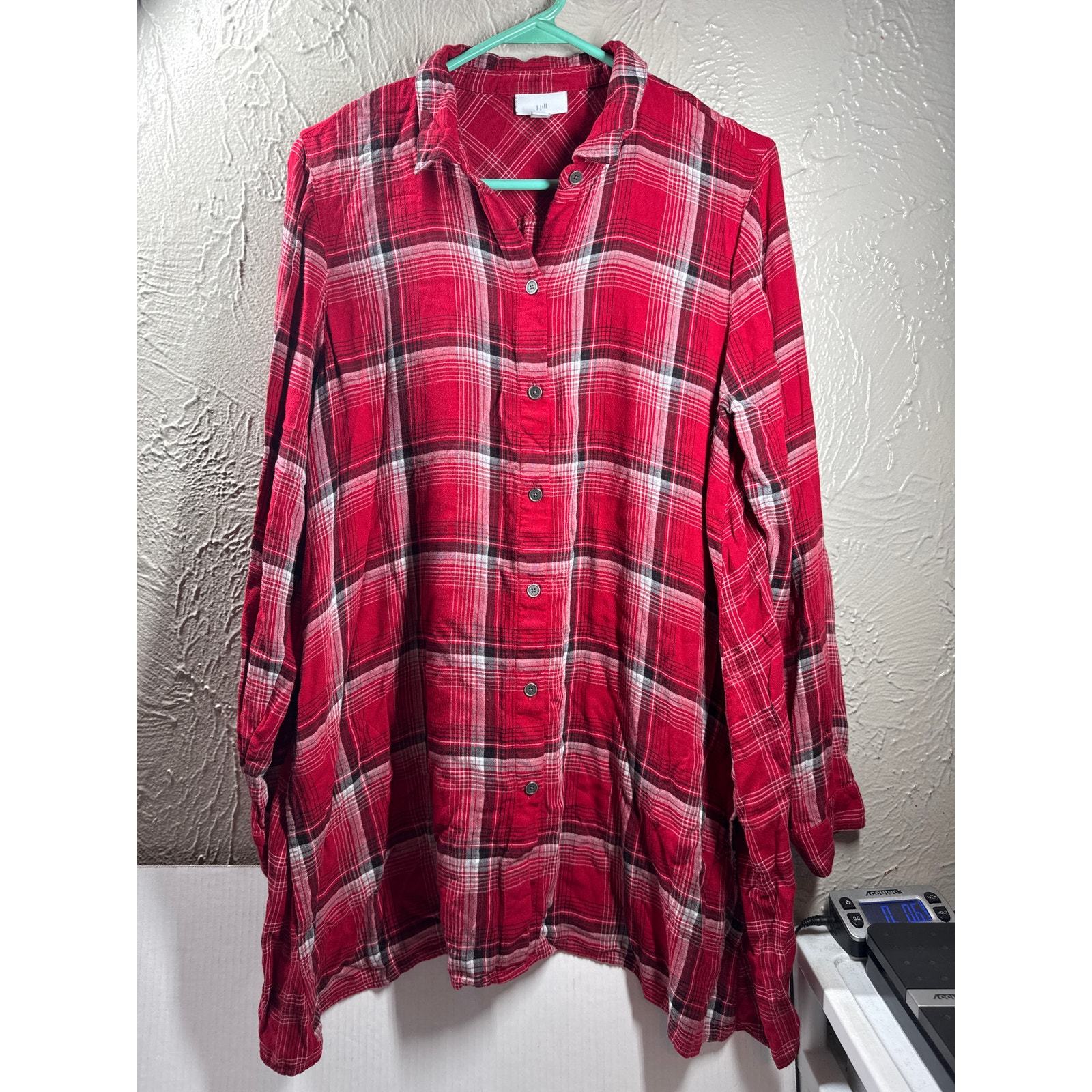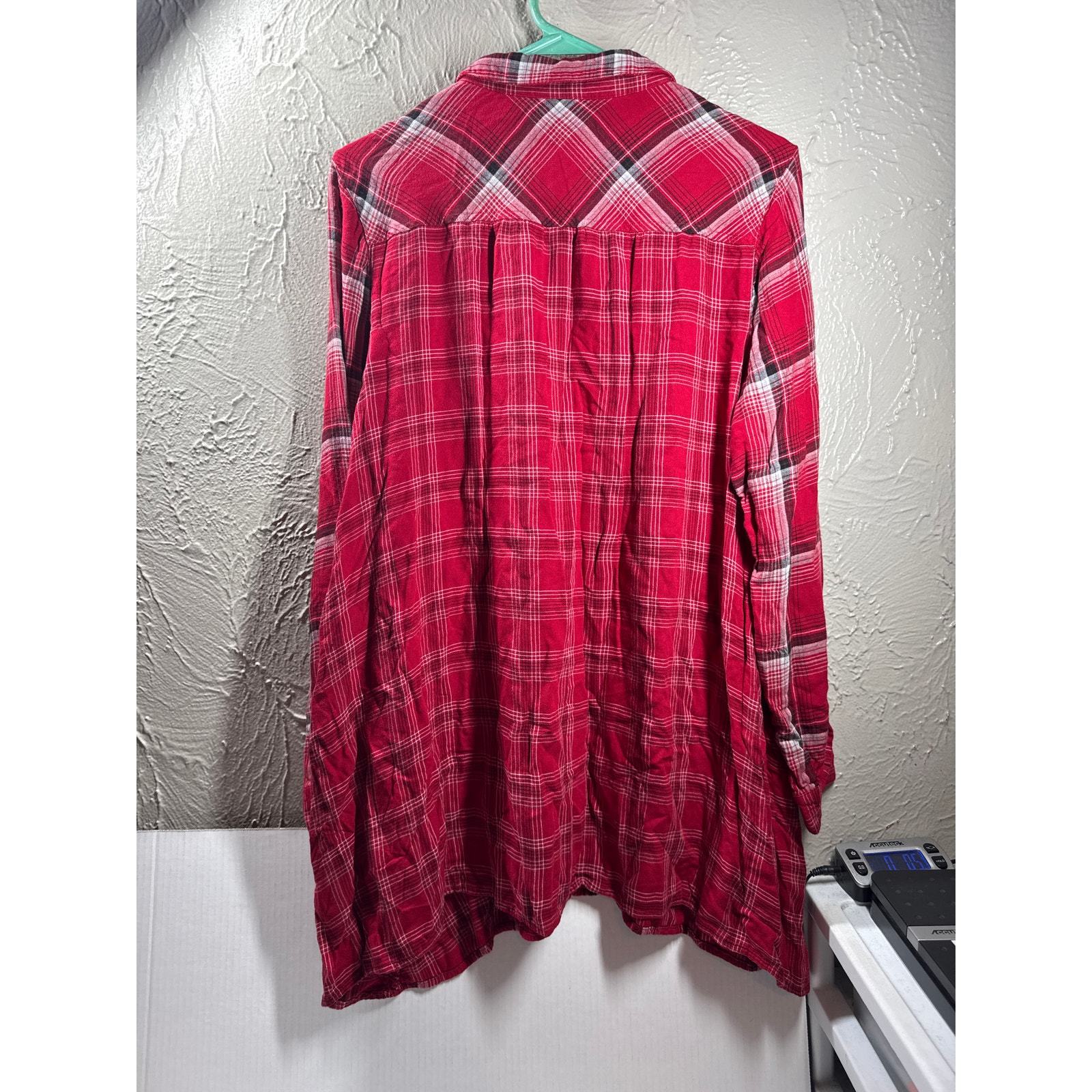 J. Jill Women Red Black Plaid Button Front Tunic Swing Top Pockets Size Medium