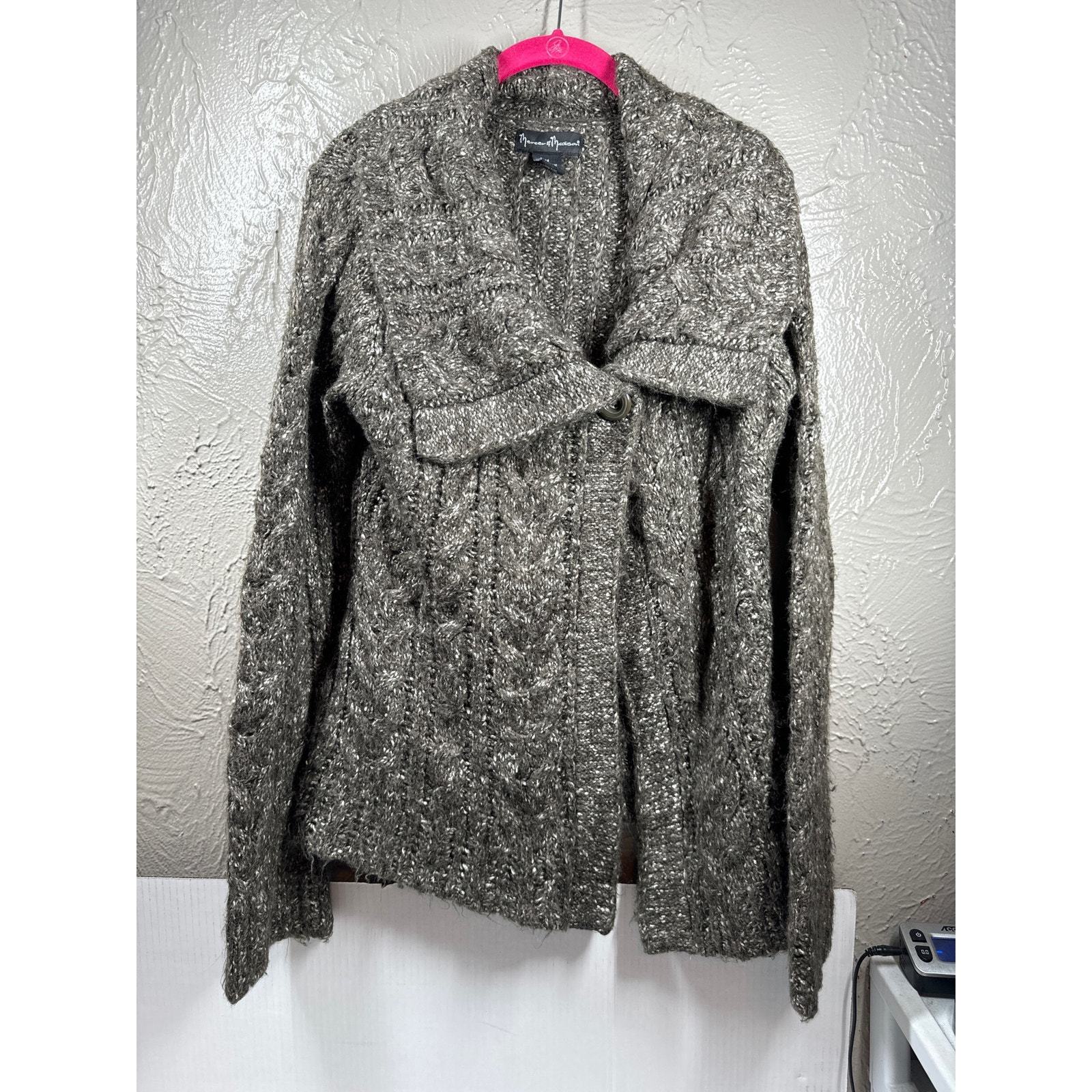 Mercer & Madison Boho Style Cardigan Green Shawl Collar Single Button Women Sz M