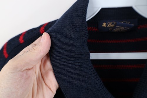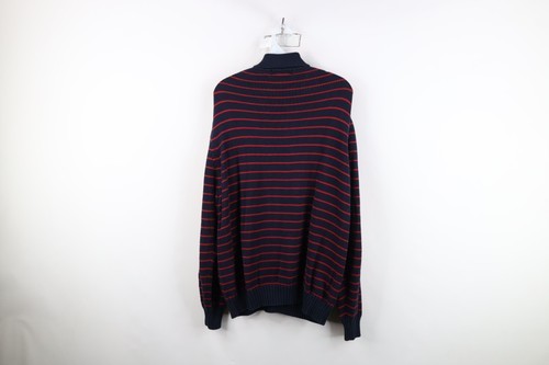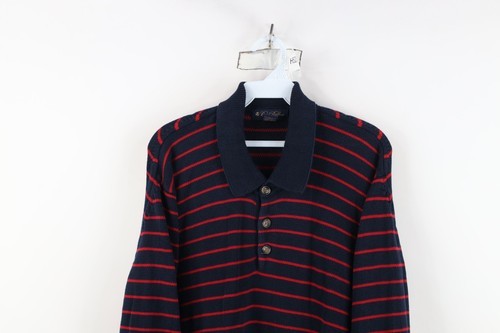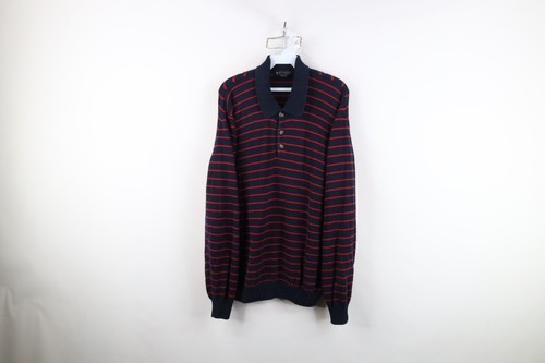 Vtg 90s Brooks Brothers Mens L Faded Heavy Cotton Knit Striped Collared Sweater