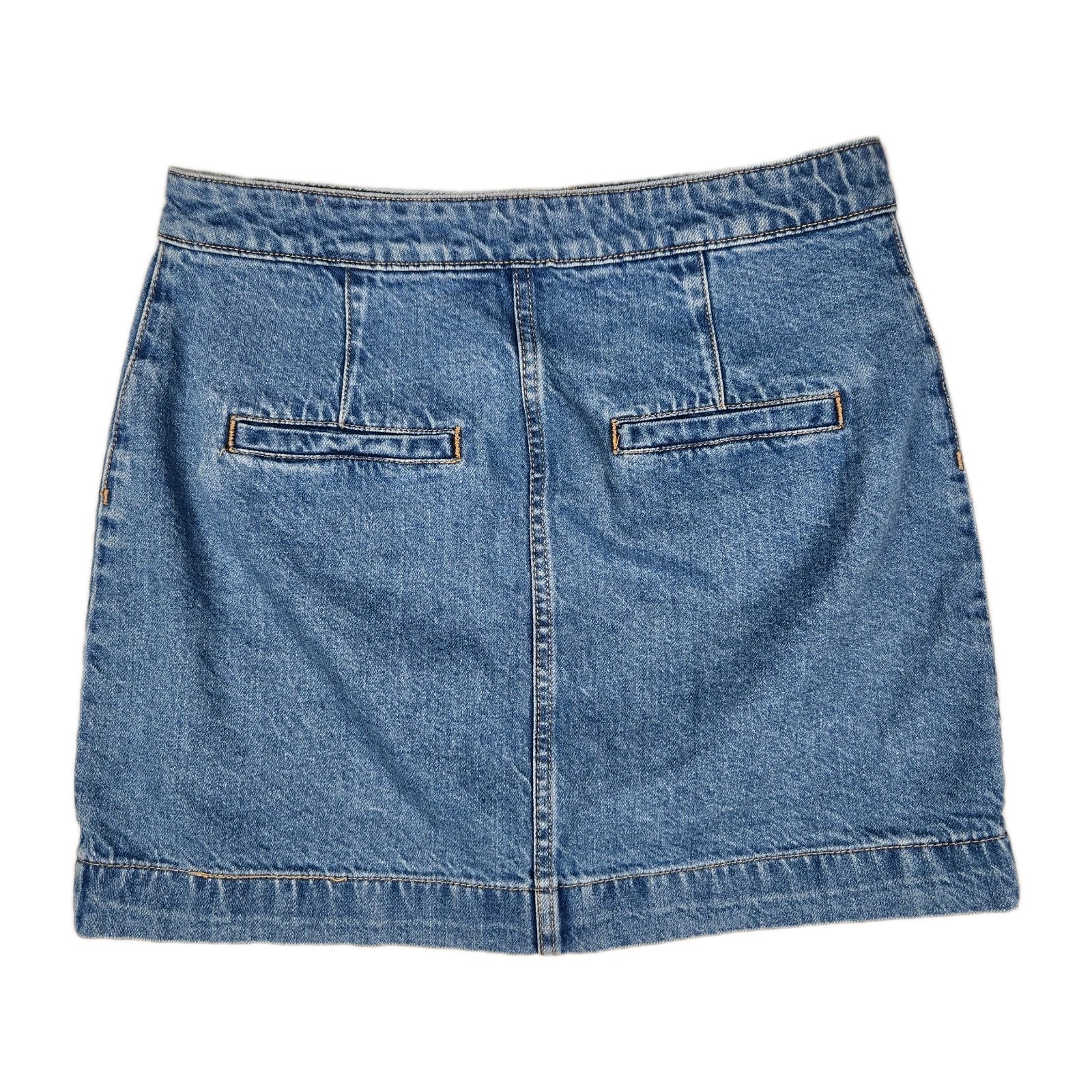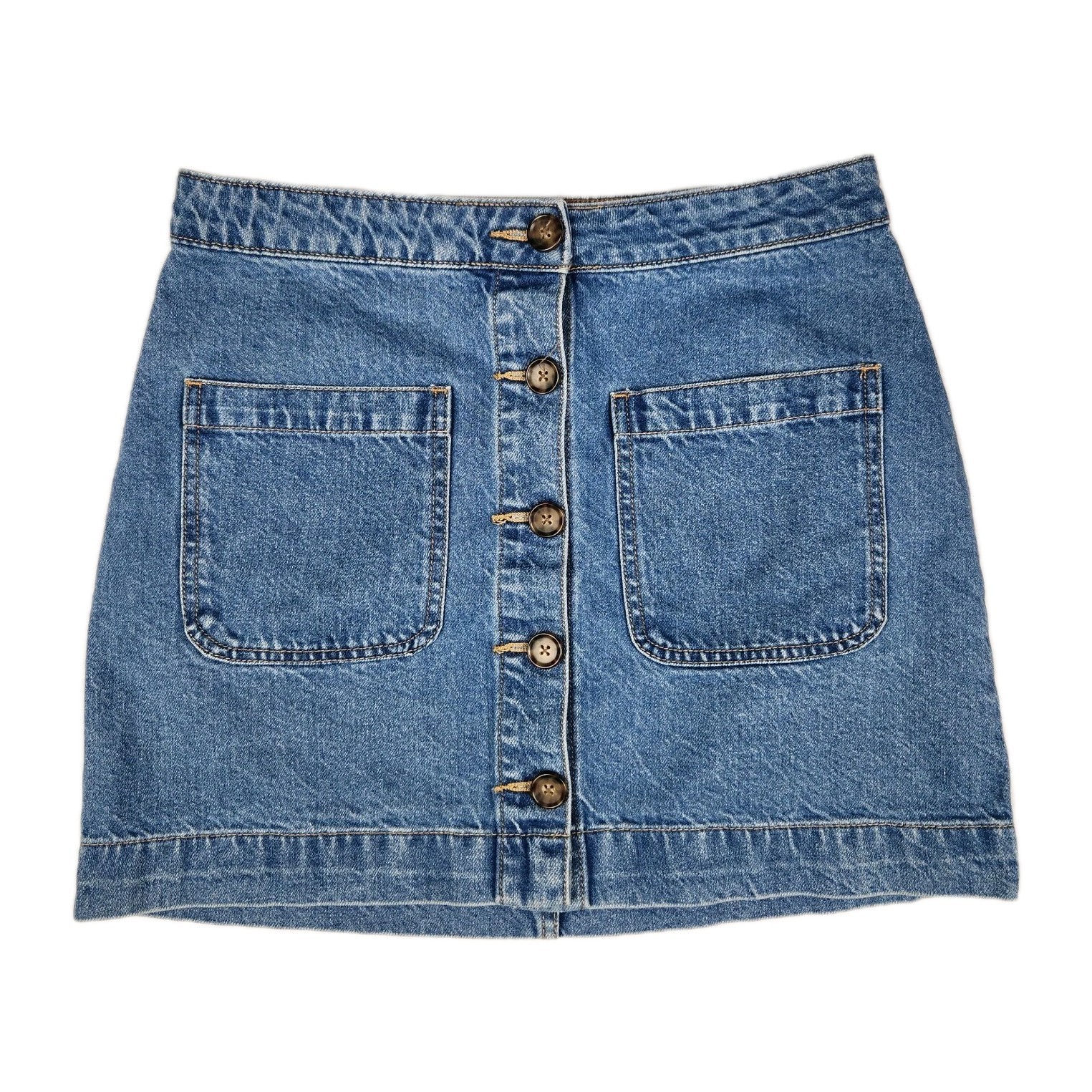The We The Free Skirt in women's size 28 is a stylish denim mini skirt from the brand Free People. Made of 100% cotton denim, this A-line skirt features a solid blue color with button closure and pocket accents. Ideal for summer, fall, and spring, this skirt is perfect for casual travel and everyday wear. The brand's unique logo adds a touch of personality to this versatile piece that can be easily machine washed for care. Perfect for those looking for a comfortable yet fashionable addition to their wardrobe.