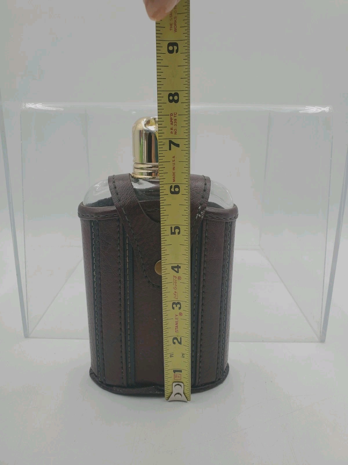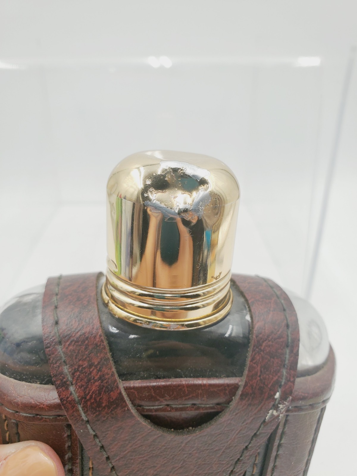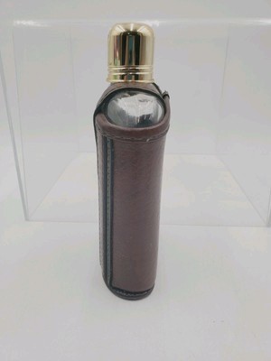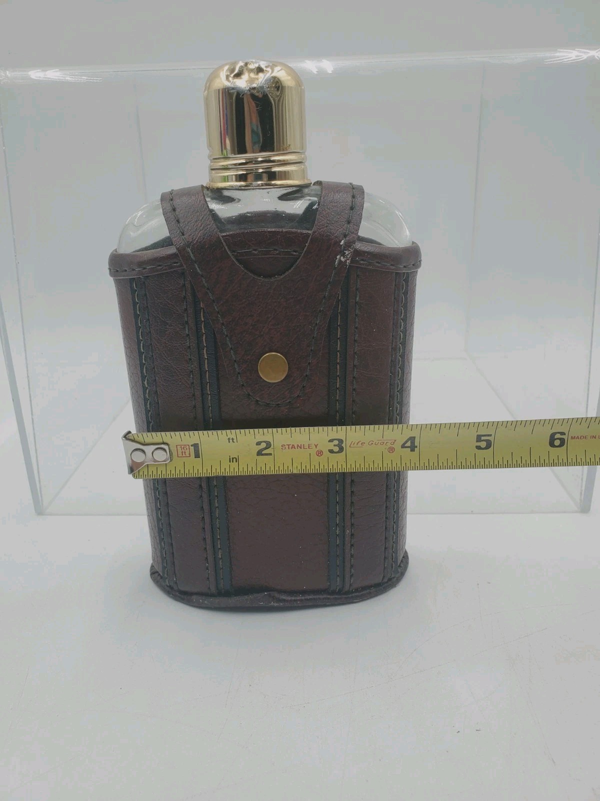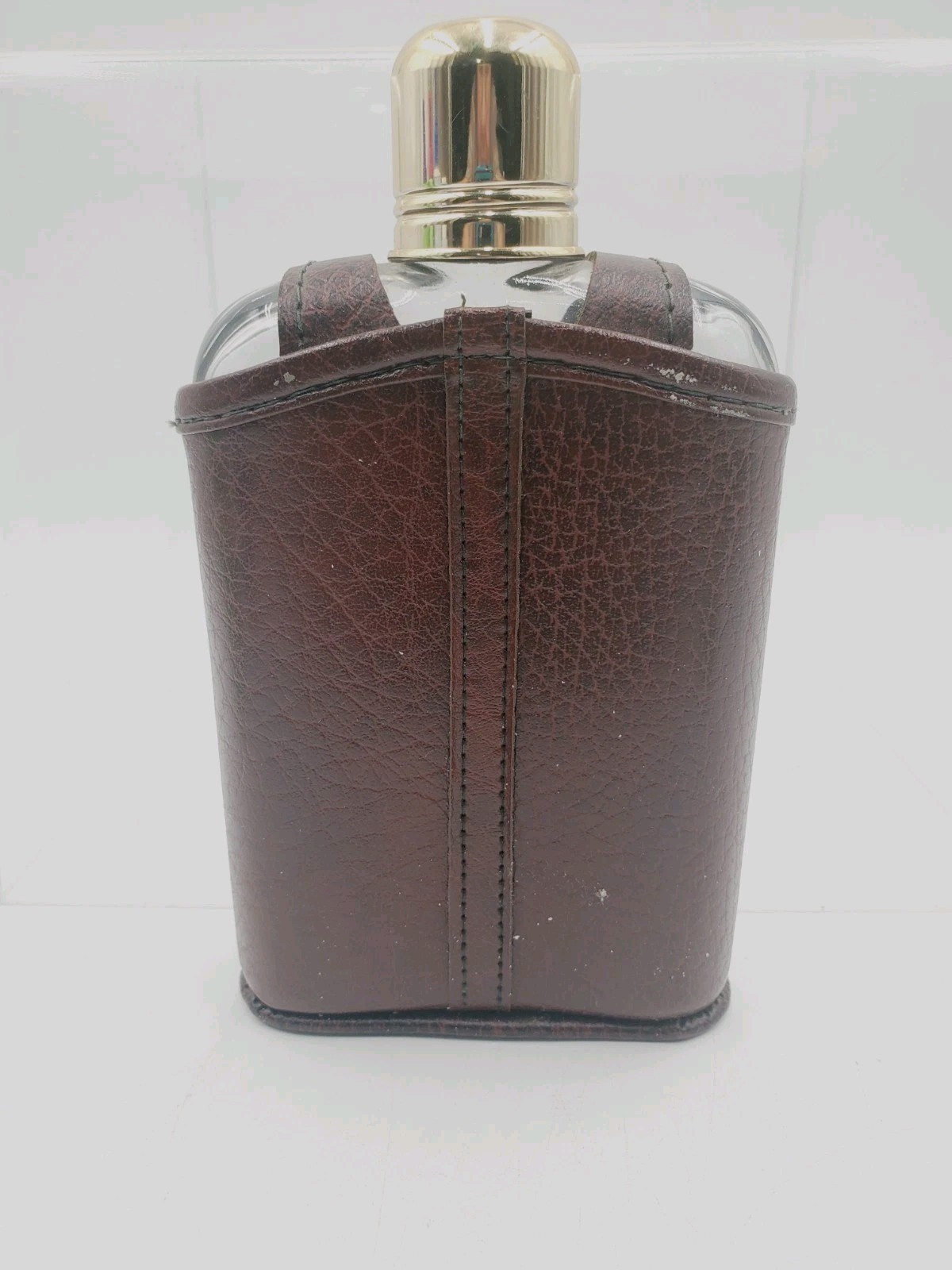 Vintage Hip Flask Glass With Faux Leather Case Gold Chrome 7.5"