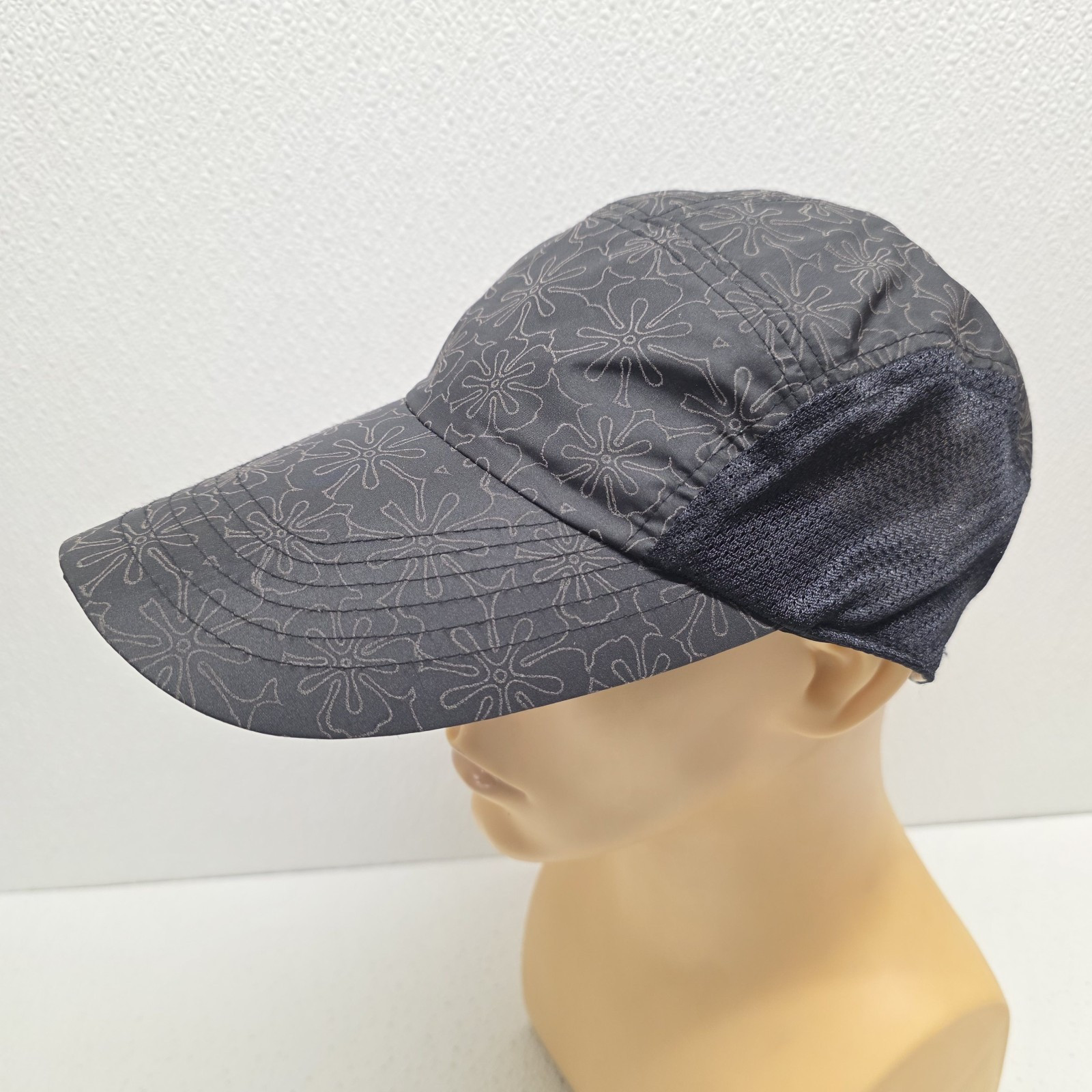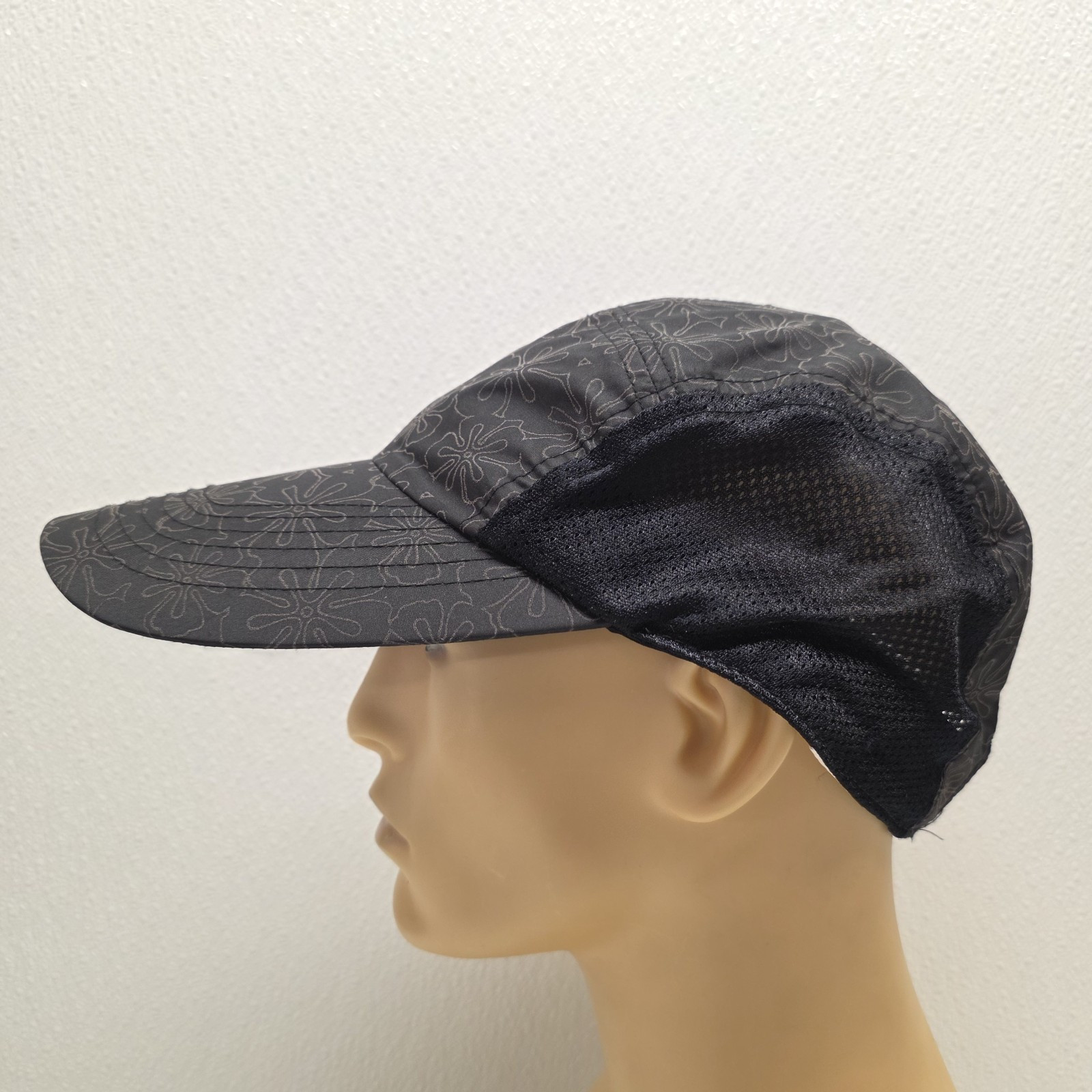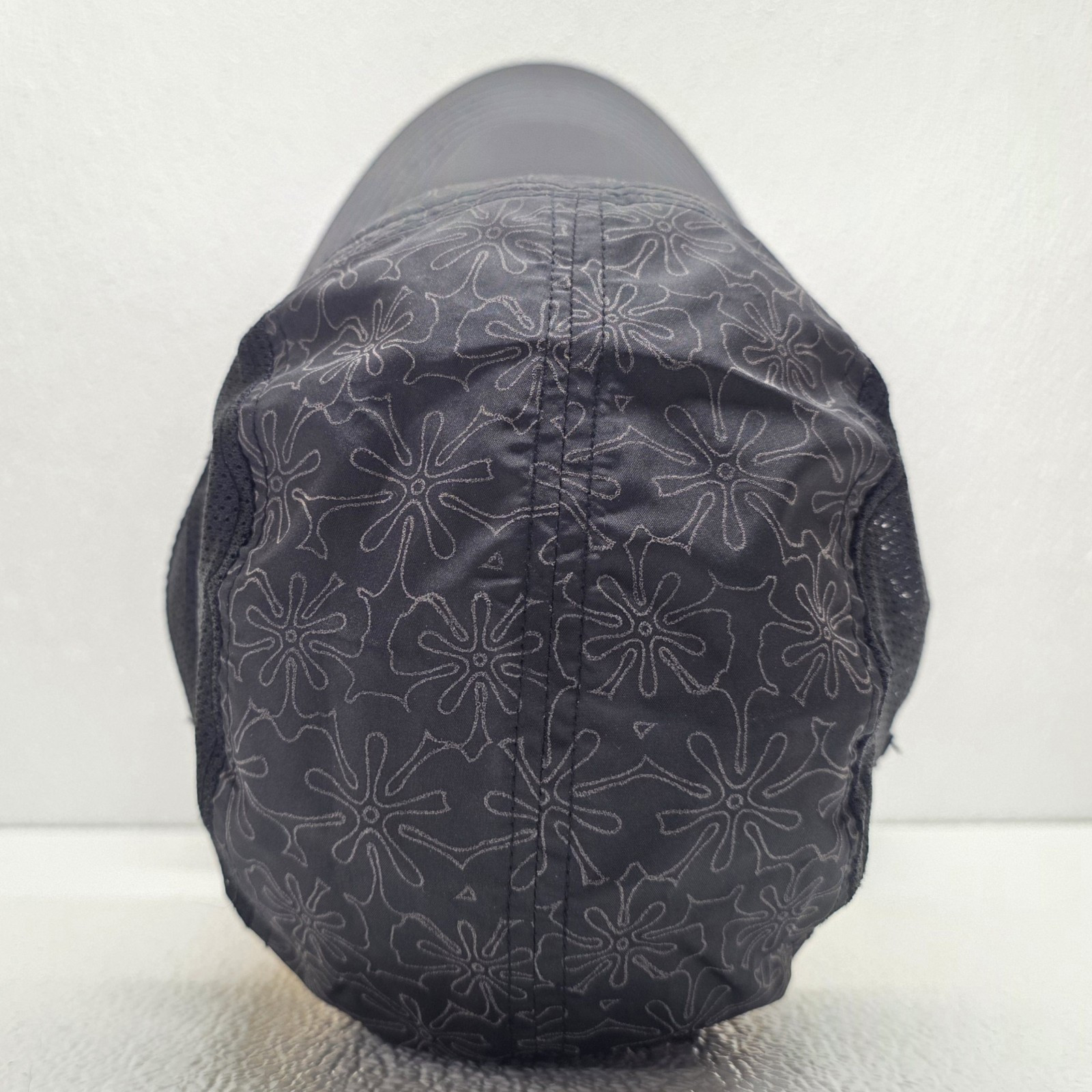 Illuminite Running Hat Cap Mesh Long Brim 5 Panel Hat Black Floral Pattern. Images show actual item that will ship.