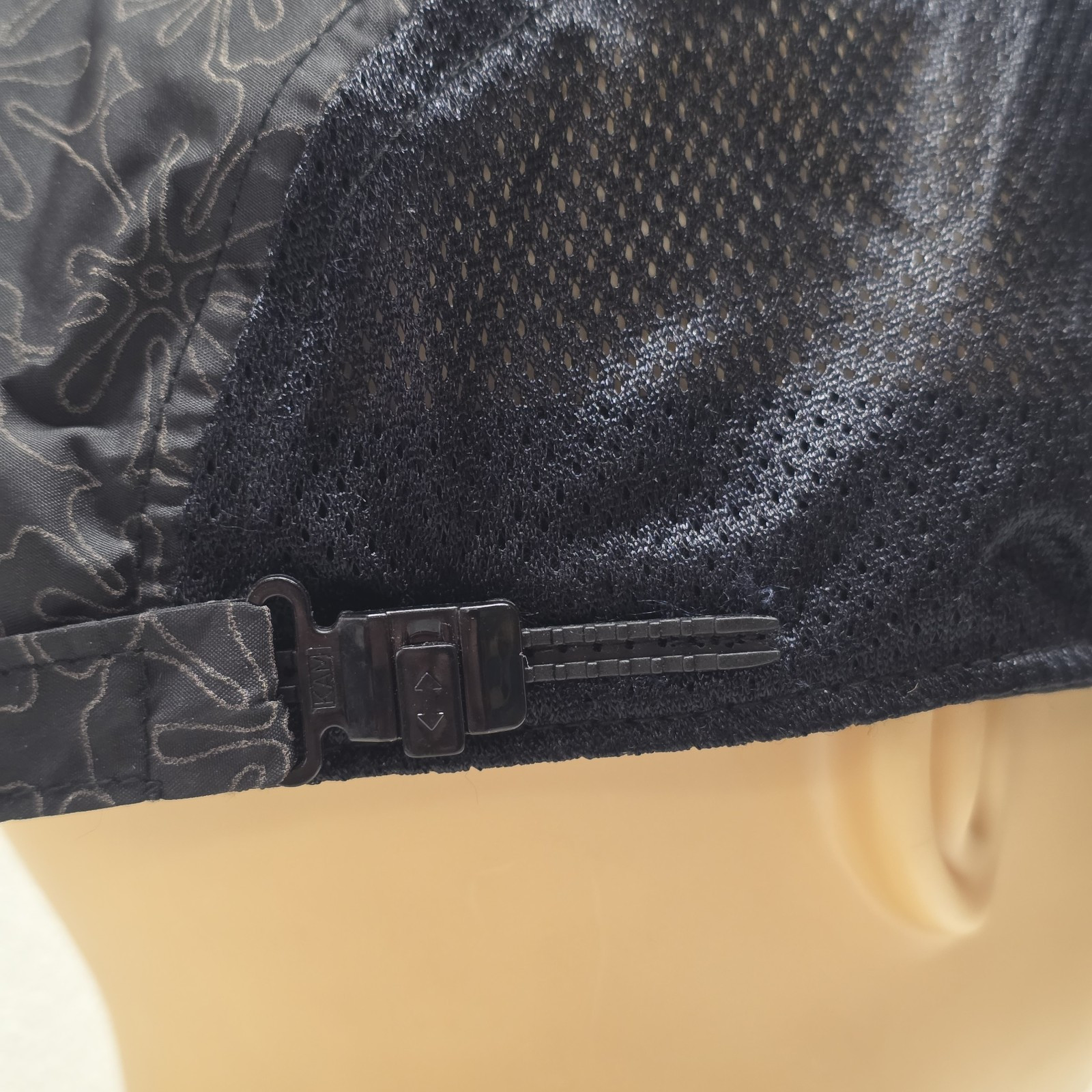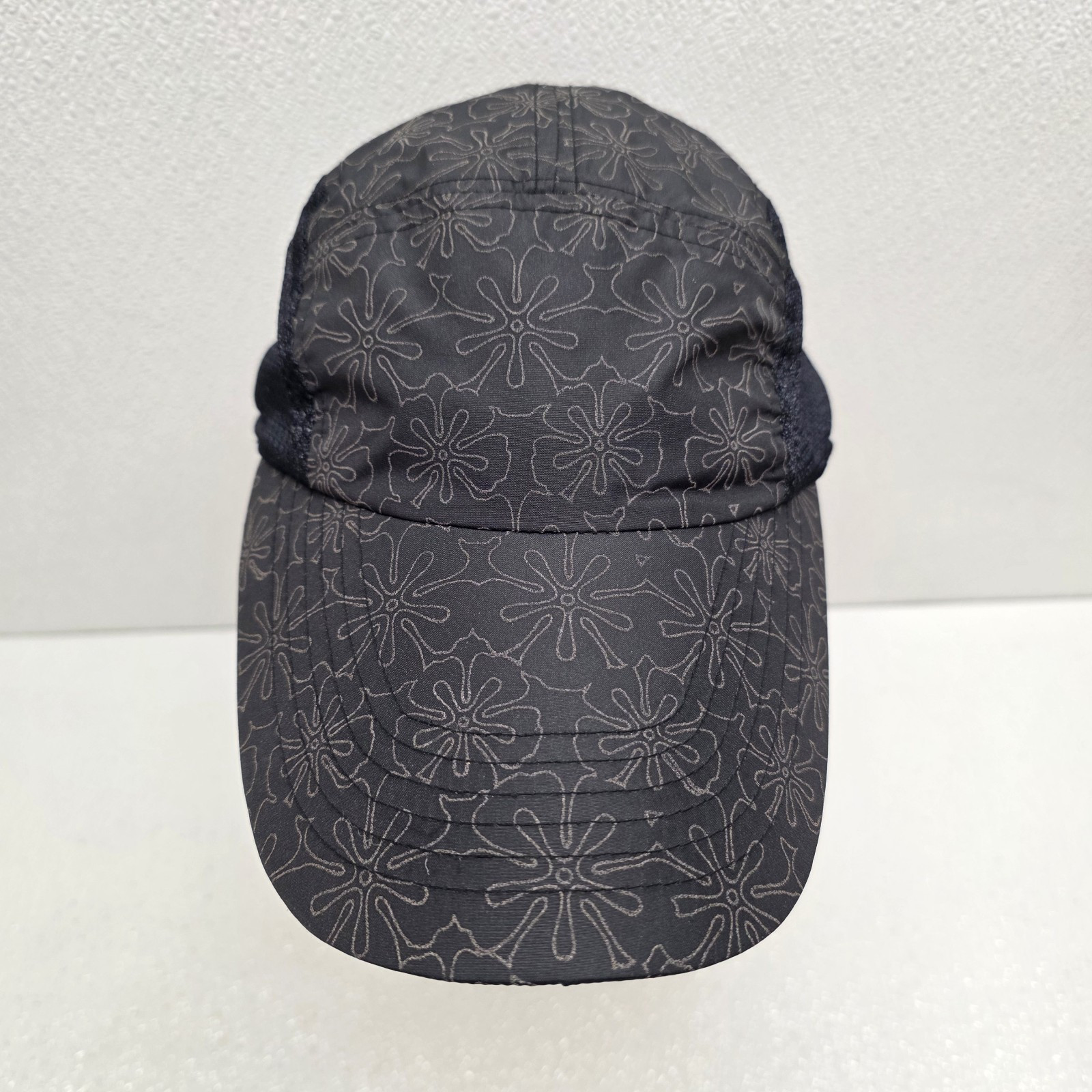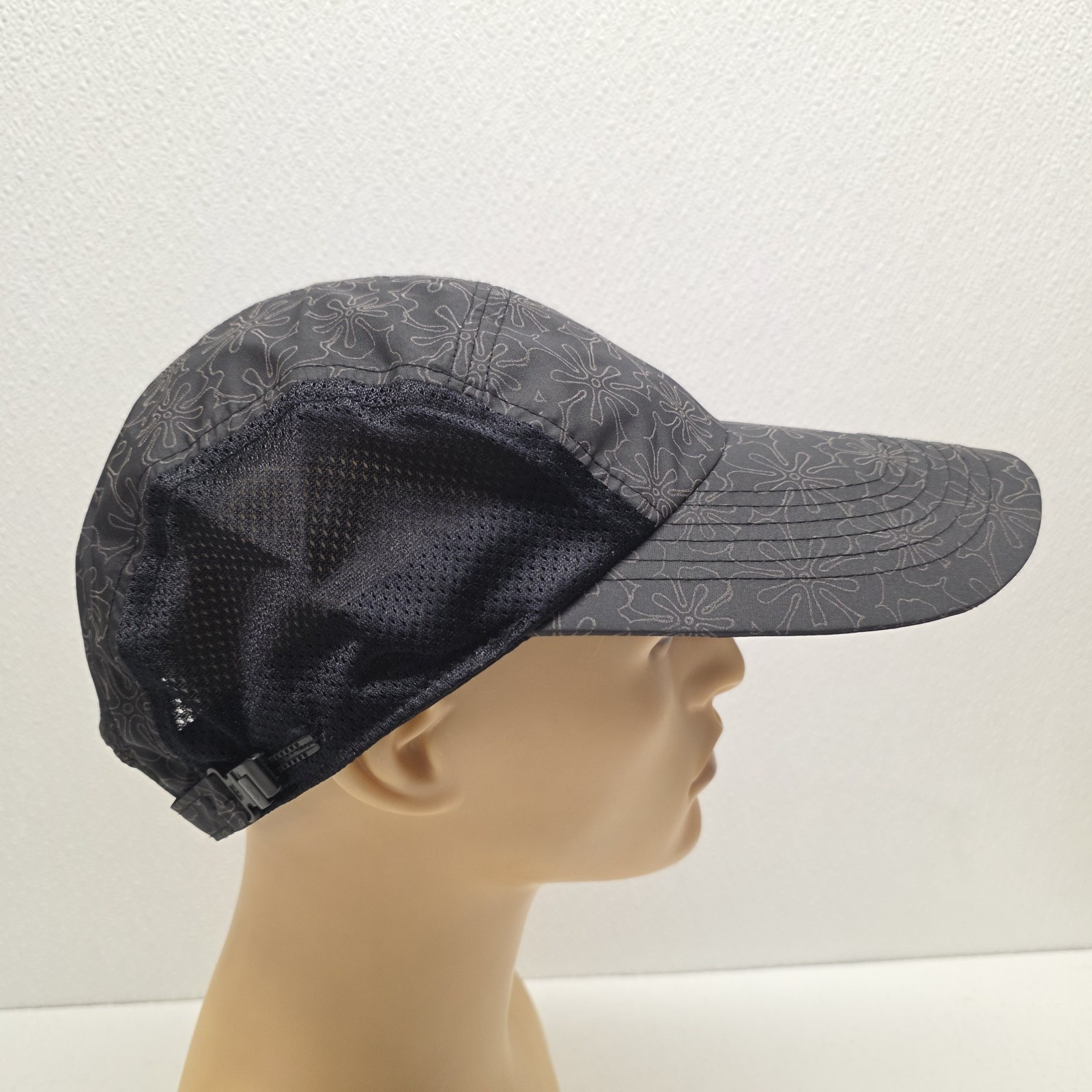 Illuminite Running Hat Cap Mesh Long Brim 5 Panel Hat Black Floral Pattern. Images show actual item that will ship.