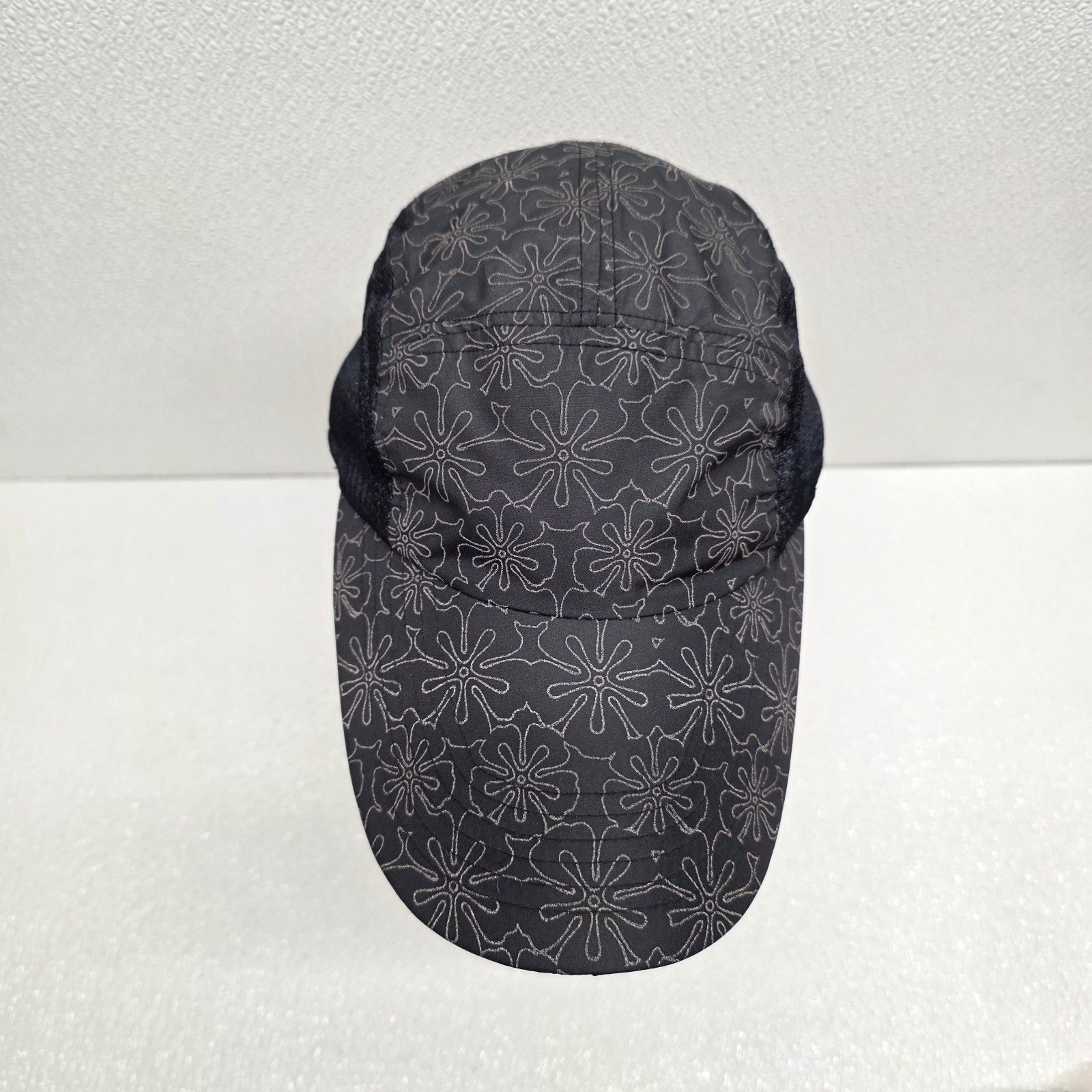 Illuminite Running Hat Cap Mesh Long Brim 5 Panel Hat Black Floral Pattern