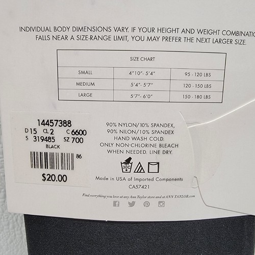 Ann Taylor The Perfect Tights Black Opaque Medium Control Top - New! Images show actual item that will ship.