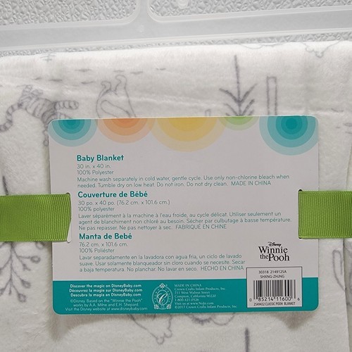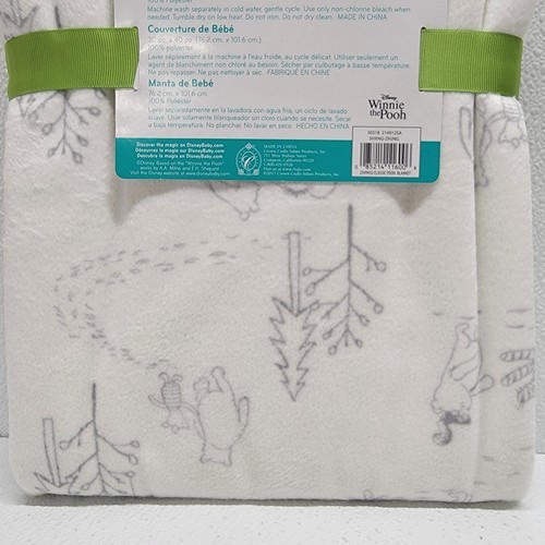 Disney Baby Classic Winnie the Pooh 30" x 40" White Gray Fleece Blanket - New! Images show actual blanket that will ship.