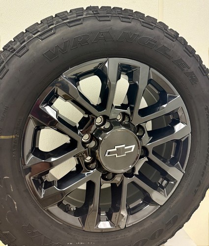 Set of 4 New Takeoff Chevy Silverado 2500 20" Black Midnight Edition Wheels With Goodyear Wrangler TrailRunner A/T LT275/65R20 Tires
