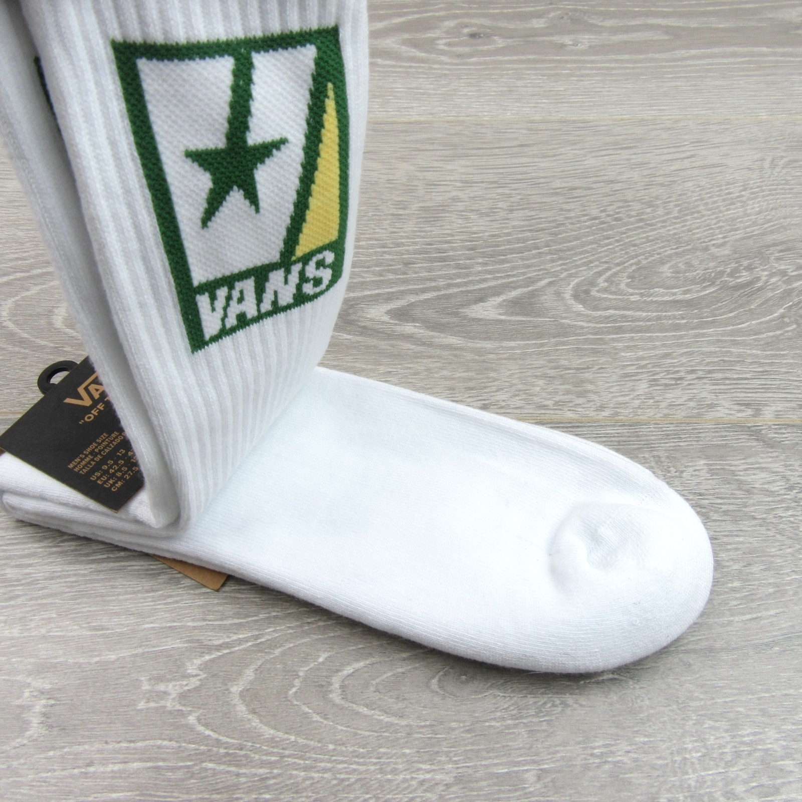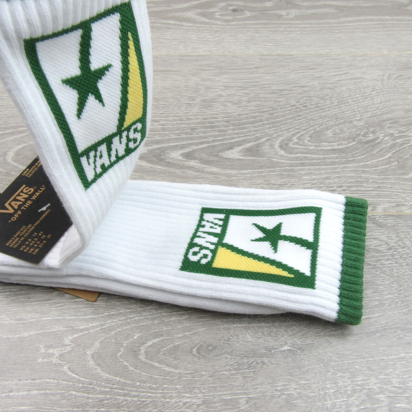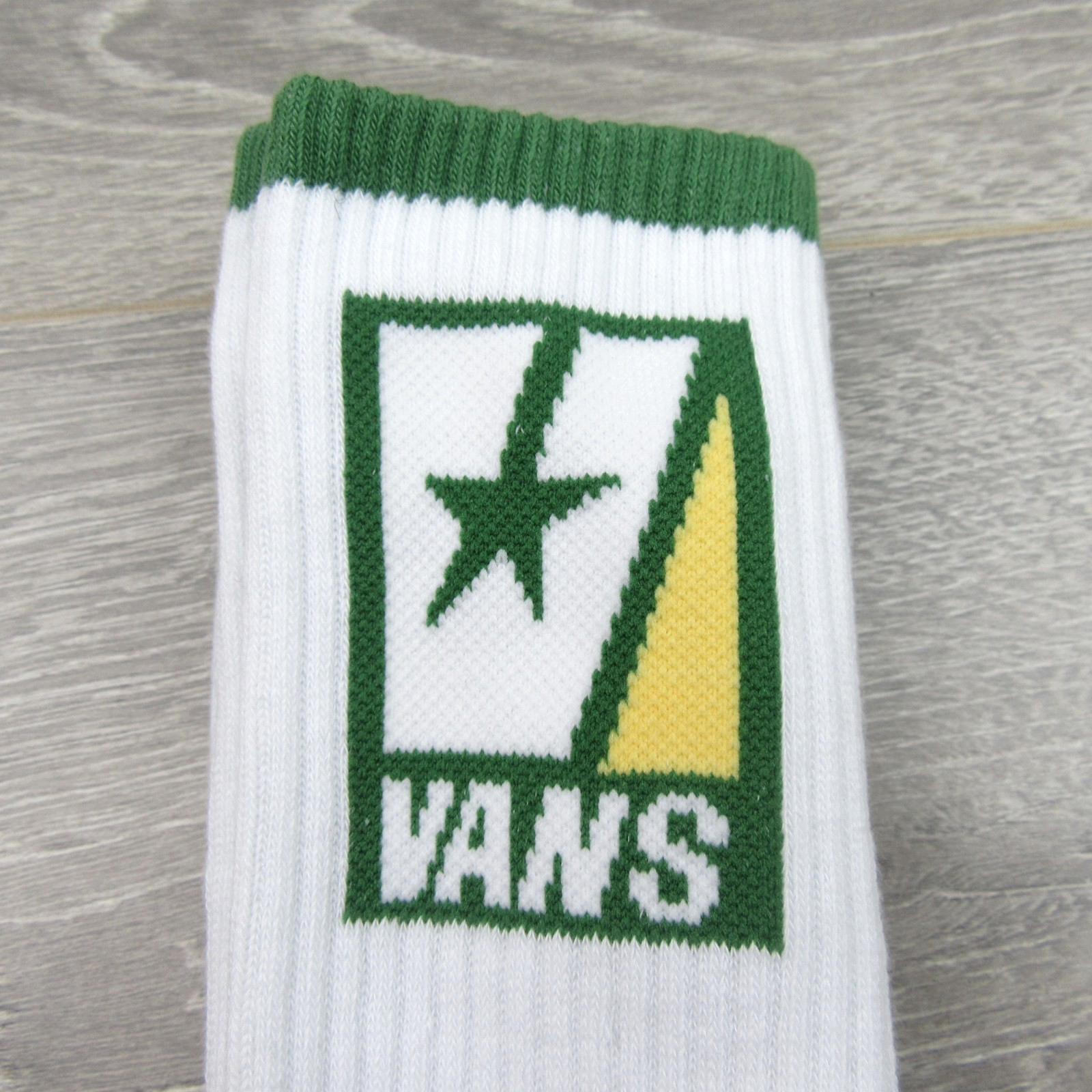 Vans Unisex Retro White Green Striped Crew Socks Size 9.5 -13 (1 Pair) NEW