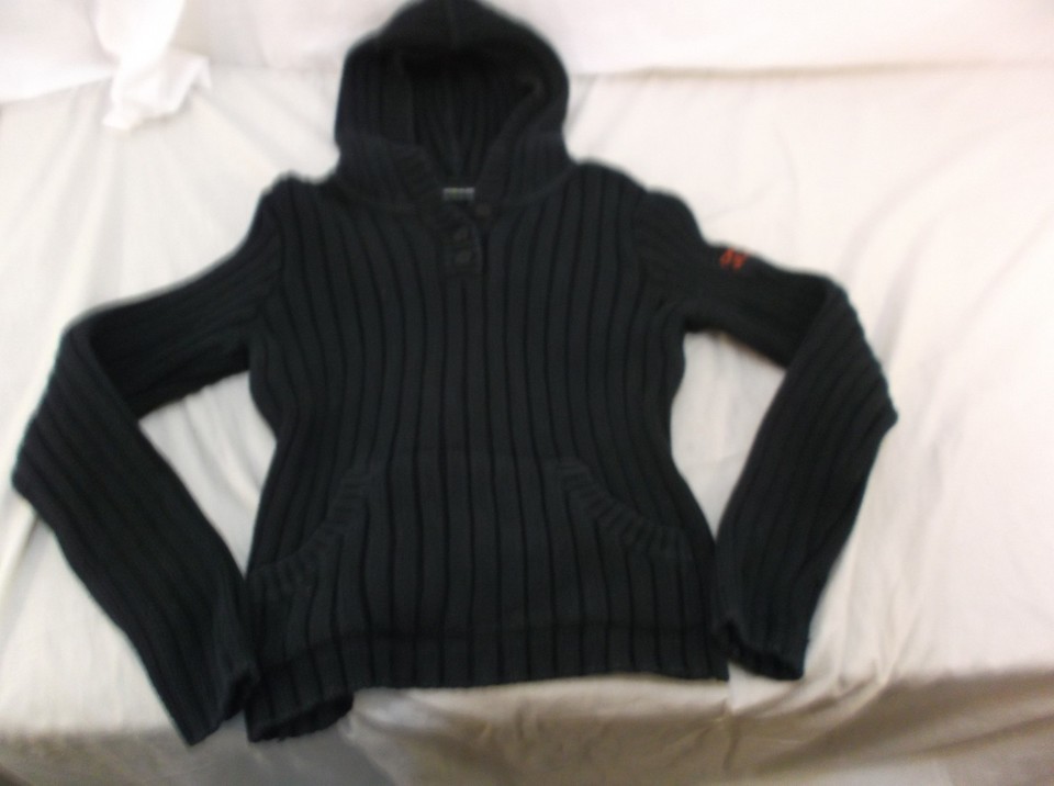 DISCONTINUED DKNY Jeans Navy Blue Knit Hooded WARM Sweater Women's Medium