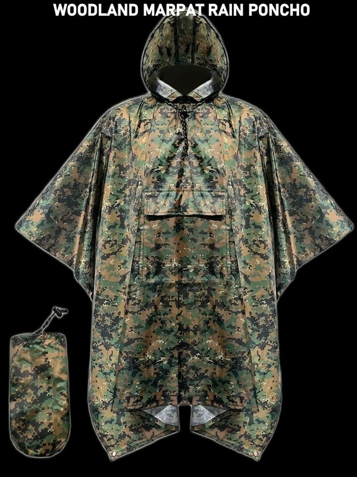 NEW WATERPROOF WOODLAND MARPAT MILITARY RAIN PONCHO WET WEATHER SHELTER HALF
