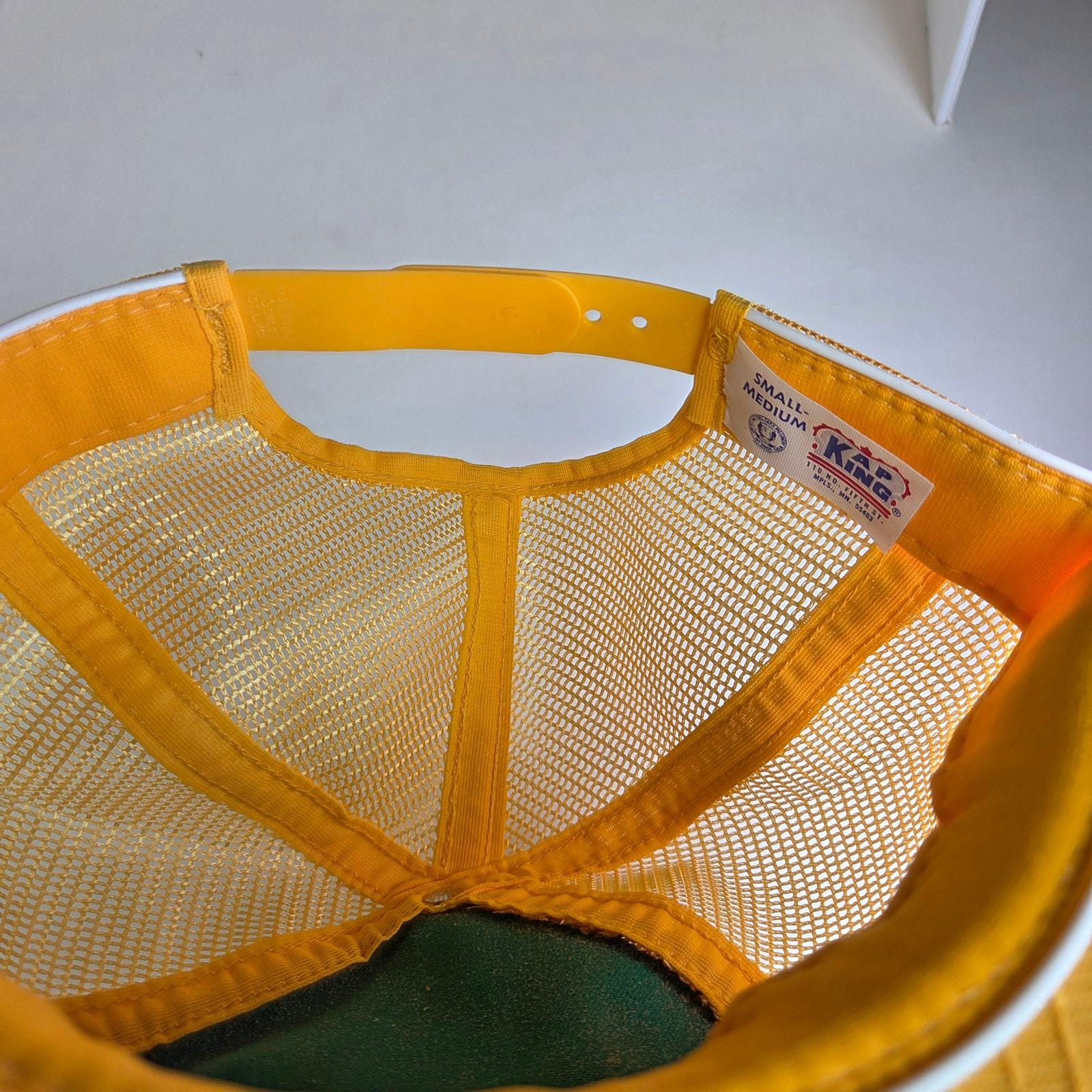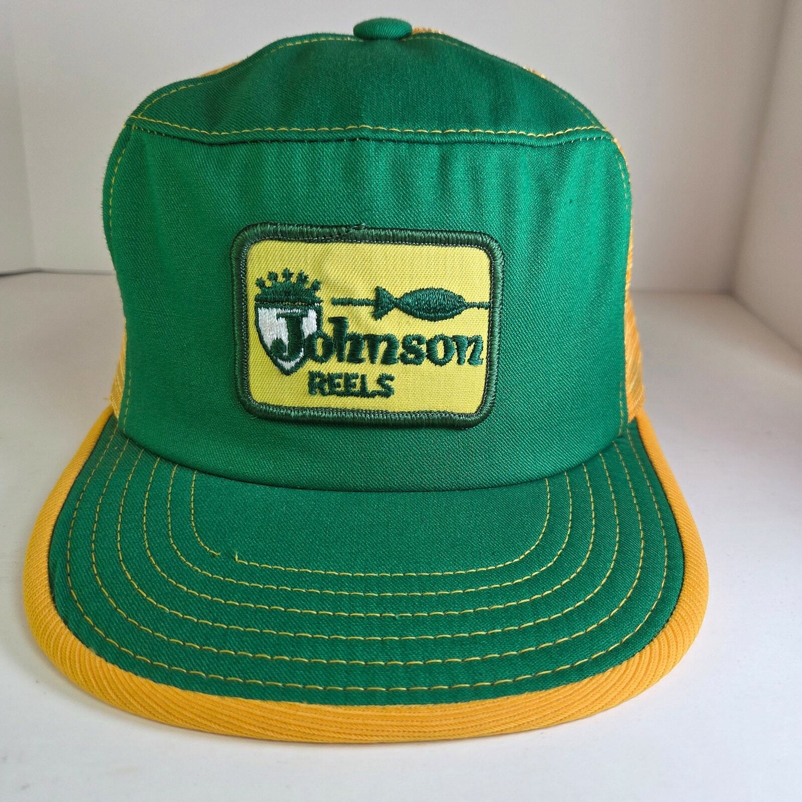 Vintage Johnson Reels Trucker Hat Green Yellow Kap King USA Snapback Foam Rot